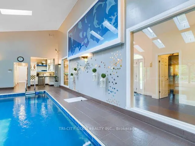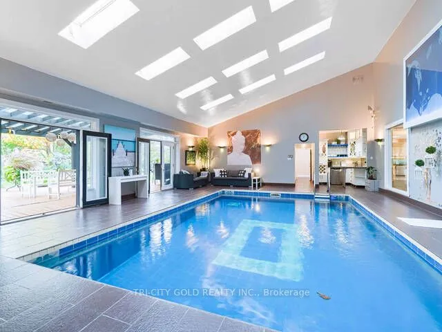 +"PublicRemarks": "Welcome to a one-of-a-kind luxury retreat where every detail has been thoughtfully curated for upscale living, endless entertaining, and total comfort and home of two feature films. This show-stopping custom-built homeoffers over-the-top features you wont find anywhere else. Perfect for families, entertainers, or anyone seeking a lifestyle upgrade! Enjoy year-round swimming in your private indoor pool oasis, complete with custom-built bar, full change rooms, personal lockers, and 2 full bathrooms right in the pool area. Step outside to a covered deck featuring a top-of-the-line 8-seat, 40-jet hot tub the ultimate in relaxation! Host epic gatherings in your mancave-style game room, featuring a custom-built bar and stunning entertainment wall unit. The open-concept layout is flooded with natural light from 14 skylights, soaring 10-foot ceilings, and wide, inviting hallways. This home boasts 4 bedrooms including 2 primary suites, each withwalk-in closets, jacuzzi tubs, and private garden walkouts. Plus: 6 luxurious washrooms, a dedicated walk-in shoe closet, and rich hardwood floors throughout. Equipped with S/S appliances including a fridge, stove, 2 built-in dishwasher, 2 bar fridges, Commercial washer/dryer, For comfort and Convenience: Enjoy the -In-floor heating throughout the entire home including the garage, 3 fireplaces for cozy ambiance, Wheelchair accessible layout, Lawn sprinkler system for low-maintenance landscaping .This property isnt just a home its an experience. Live where luxury meets lifestyle, and where every day feels like a getaway."