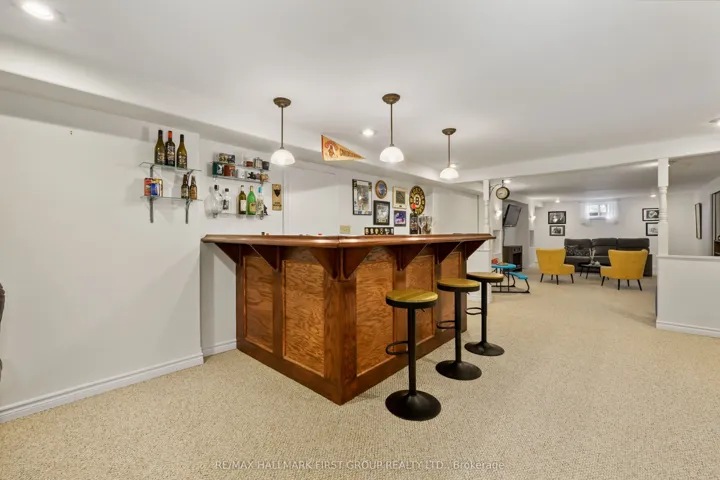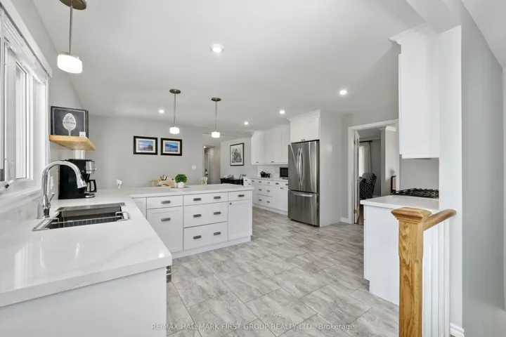 +"PublicRemarks": "Beautifully updated bungalow with an attached garage and finished basement, backing onto Dalewood Golf Course. An ideal setting for golf enthusiasts and those seeking peaceful, scenic surroundings. Step into the open front foyer, where diagonally laid flooring flows seamlessly through the main living areas. Glass French doors lead into a bright living room featuring a wall of windows and elegant crown moulding. The spacious dining room is perfectly suited for hosting large gatherings and holiday dinners. The modern eat-in kitchen offers a generous, informal dining area, ideal for everyday meals. Thoughtfully designed, it showcases sleek countertops that extend seamlessly into the backsplash, stainless steel appliances including a hood vent, ample cabinetry and counter space, a breakfast bar, pendant lighting, and open shelving. A convenient walkout enhances functionality and flow. The main floor family room provides a comfortable space to unwind, complete with a walkout to the backyard for effortless indoor-outdoor living. The primary suite is warm and inviting, featuring crown moulding and a private ensuite with a glass shower enclosure. Two additional bedrooms, a full bathroom with double vanity, and a dedicated laundry room complete the main level. The finished lower level expands the living space with a sprawling rec and games room, offering distinct areas for media, lounging, and entertaining. A built-in bar and games area make it perfect for hosting, while a large guest room and additional bathroom add versatility. Outdoors, enjoy a spacious deck with a propane BBQ hookup, ideal for summer entertaining. The property boasts ample green space, perennial gardens, and mature trees that provide privacy and a sense of seclusion, all complemented by stunning golf course views. A Generac generator offers added peace of mind. Conveniently located near amenities, this home offers the perfect balance of relaxed country living and everyday convenience."
