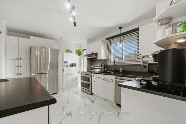 +"PublicRemarks": "Stunning 4-level side split offering exceptional space and versatility, complete with a fully self-contained in-law suite. From the moment you arrive, the inviting front porch sets the tone for this beautifully maintained home. Inside, you'll find a bright, open-concept main level featuring a spacious kitchen and dining area that flows seamlessly into the sun-filled living room with a cozy gas fireplace. The second level offers two generous bedrooms and a modern 4-piece bath. Walk out from the dining area to your private backyard oasis, fully fenced and thoughtfully designed with patios, a gazebo, above-ground pool, and hot tub-perfect for relaxing or entertaining while keeping children and pets safe. The third level features two additional bedrooms and another full bath, ideal for a growing family, guests, or home office space. The fourth level boasts a complete in-law suite with its own kitchenette, countertop range, breakfast bar, comfortable living area with gas fireplace, a fifth bedroom, and a 3-piece bath-perfect for extended family. Freshly painted (excluding the fourth level) and extensively updated, this move-in ready home is a rare find. A must-see property offering comfort, flexibility, and outstanding outdoor living."
