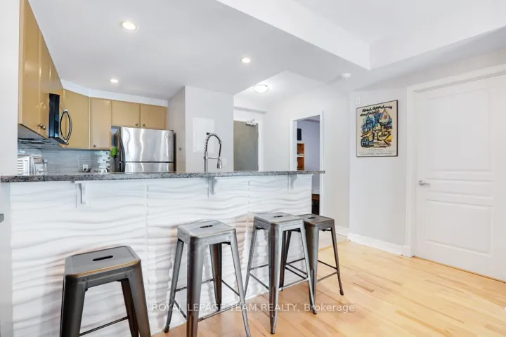 +"PublicRemarks": "Welcome to this bright and thoughtfully designed 1 bedroom plus den condo in the heart of sought-after Sandy Hill. Featuring an open-concept layout with hardwood floors, high ceilings, and large windows, the space is filled with natural light and offers a comfortable flow for both everyday living and entertaining. The kitchen is equipped with granite countertops, ample cabinetry, and a breakfast bar overlooking the spacious living and dining area, creating an inviting and functional central living space.The enclosed den offers excellent versatility, ideal as a home office, guest room, or additional living area. The generous primary bedroom includes ample closet space and convenient access to the full bathroom. Enjoy the added convenience of in-suite laundry, a private balcony for outdoor relaxation, as well as underground parking and a storage locker.Residents benefit from fantastic building amenities including an indoor pool, fitness centre, party room, and BBQ area, providing comfort and lifestyle convenience year-round. Perfectly located just steps to the By Ward Market, Rideau Centre, LRT station, University of Ottawa, grocery stores, LCBO, cafés, and some of the city's best restaurants, with easy access to the Rideau Canal, parks and Parliament Hill. An exceptional opportunity to enjoy vibrant downtown living in one of Ottawa's most walkable and established neighbourhoods."
