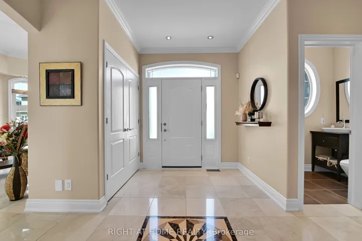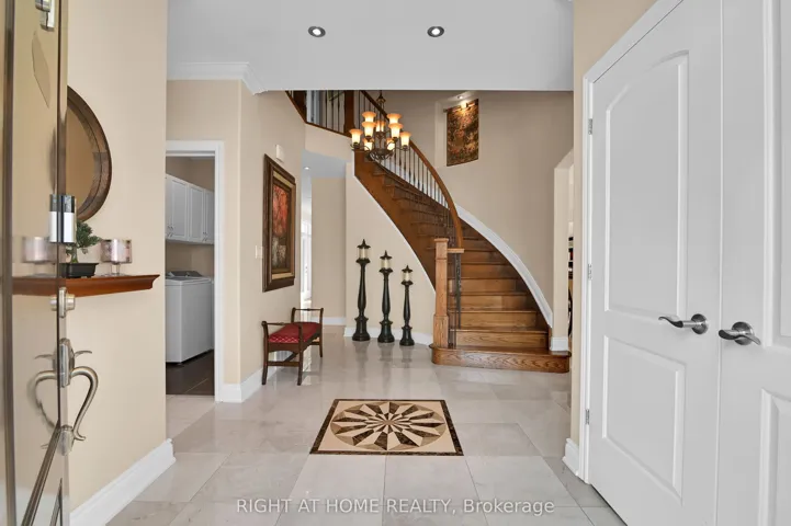+"PublicRemarks": "Tucked away in a peaceful enclave, this custom-built stone house delivers sophisticated design, premium finishes, and an enviable lifestyle. It sits on a beautifully landscaped corner lot surrounded by vibrant flower beds and is perfect for summer entertaining, morning coffee/evening relaxation under the stars. Step into the grand foyer featuring custom inlaid marble medallion floor in a dramatic compass design, a curved oak staircase with hardwood stairs and ornate wrought-iron railings, and soaring ceilings bathed in natural light. The main level flows effortlessly into generously proportioned principal rooms. The gourmet kitchen is a chef's dream with rich dark cherry wood cabinetry, sleek black granite countertops, a large central island with breakfast bar and top-tiered stainless steel appliances. It opens seamlessly to the family room anchored by a striking stone fireplace and warm hardwood floors. Adjacent, the formal living and dining areas impress with arched windows dressed in custom blinds, multiple chandeliers, crown moulding, and neutral designer tones that create an inviting yet refined atmosphere. You will love the 11 feet super high ceiling through out and an additional office/bedroom in the corner to meet your various needs. Upstairs are three spacious bedrooms offer oversized windows flooding with light and a serene palette. The master bedroom ensuite features his and her sink, dark wood vanity and a separate toilet with a close door and.Downstairs, the fully finished recreation room is an entertainer's delight-complete with a full-size ping-pong table, comfortable lounge seating, and can be converted to an in-law suite by adding a small kitchenette. This house was designed by the current owner and was built with love and passion: 9-inch poured concrete foundation, solid wood, reinforced roof support just to mention a few. 750$ per year association fee to cover the snow plowing for the private rd. Hot-water tank is rental at 50$ including hst."