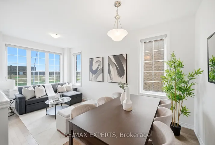 +"PublicRemarks": "Rarely offered modern and elegant end unit freehold townhouse with a stunning stone and brick façade, offering nearly 2,000 sq ft of above grade living space with a spacious and functional layout including living, dining, and family rooms, three large bedrooms, and convenient upper level laundry. This bright home features 9 ft smooth ceilings on the main floor, a beautiful white kitchen, and no carpet throughout. The large primary bedroom includes a walk in closet and a spacious ensuite with a glass shower. Enjoy an interlocked driveway extension with extra parking, a generous 35 ft wide rear, and a large private backyard with no rear neighbours, perfect for relaxing and entertaining. The unspoiled basement offers endless potential. Ideally located close to parks, schools, shopping, the GO Station, Hwy 404, and just steps to the brand new state of the art Community Health and Active Living Plaza, adding exceptional convenience and long term value to the neighbourhood. A must see!"