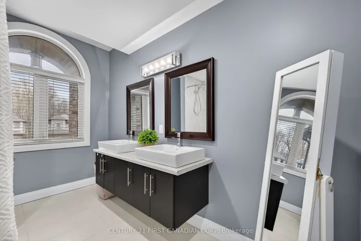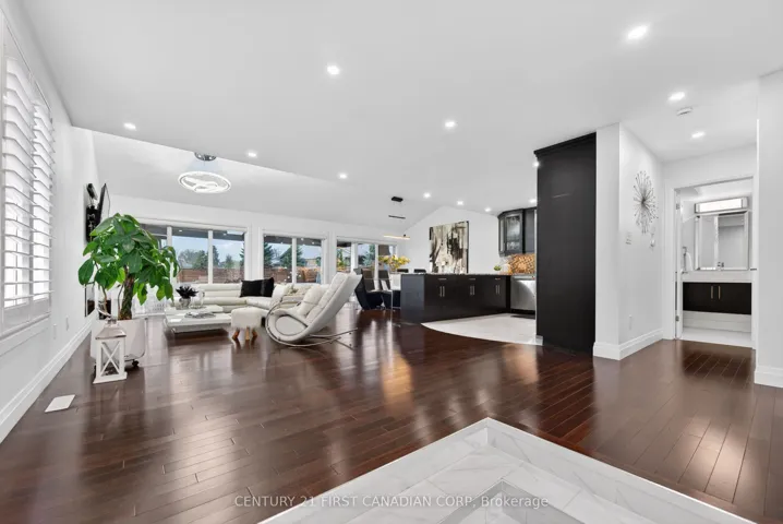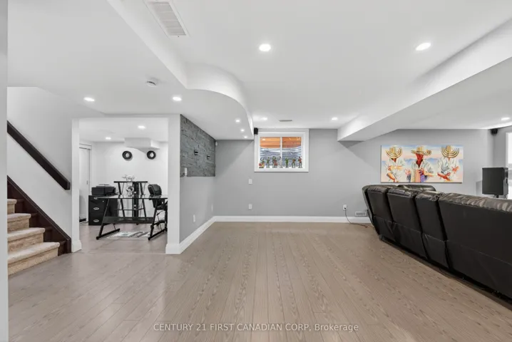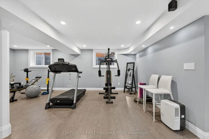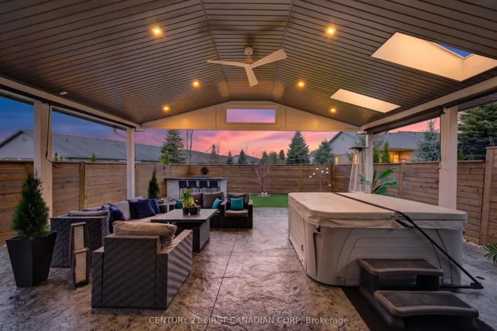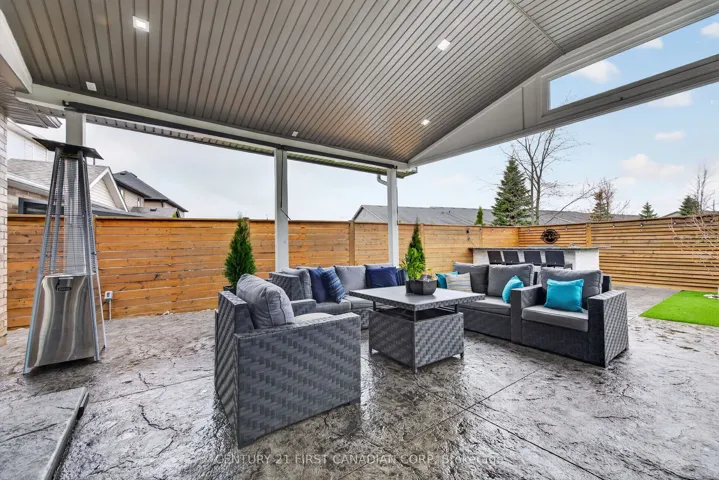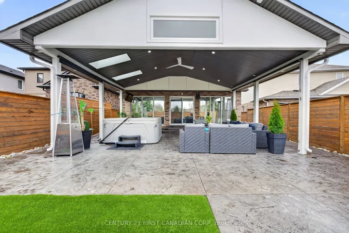 +"PublicRemarks": "Welcome to this stunning modern two storey home in the sought after Foxfield community in North London. Offering 3 bedrooms, 3.5 bathrooms, and an attached two car garage, this home also features a beautifully designed backyard oasis complete with an approximately 600 sq ft covered concrete patio. The main floor showcases a sleek, open concept layout with a vaulted ceiling in the great room and an electric fireplace as a stylish focal point. The entire back wall is lined with windows and a large patio door, filling the space with natural light and providing seamless views of the backyard. The kitchen is both functional and contemporary, featuring granite countertops, tile backsplash, and a breakfast bar, with the dining area conveniently adjacent. A two-piece powder room and main floor laundry add everyday practicality. Upstairs, the spacious primary bedroom offers a walk-in closet and a private four-piece ensuite, along with its own electric fireplace for added comfort. Two additional generously sized bedrooms and a four-piece bathroom complete the upper level. The finished lower level provides a large rec room along with a versatile den or office space, ideal for working from home or additional living needs. Step outside to the fully fenced backyard, where the covered patio and outdoor bar create the perfect setting for relaxing or entertaining. Located in the desirable Foxfield neighbourhood, this home is close to Western University, schools, parks, walking trails, shopping, restaurants, and convenient amenities, making it an excellent choice for modern family living."