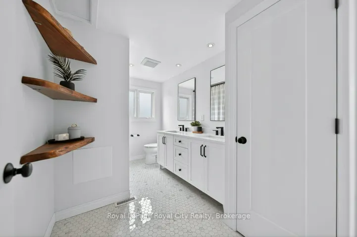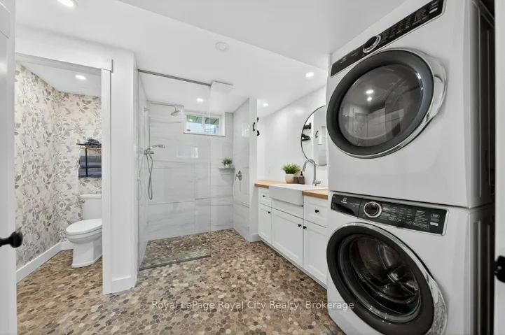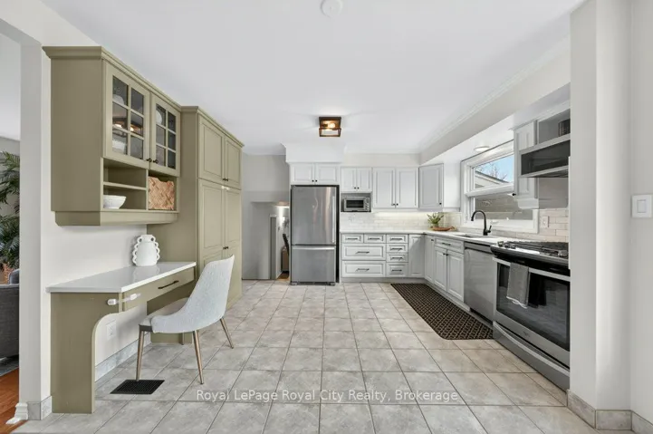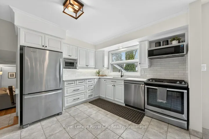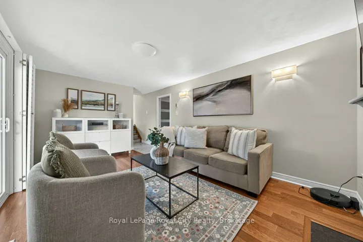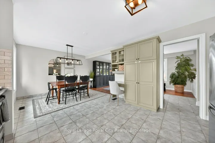+"PublicRemarks": "Imagine discovering a street you probably never knew existed. Tucked away in a quiet, tree-lined cul-de-sac, it is the kind of hidden gem where kids can play safely, and neighbors actually know each other, located in one of Guelph's most established and friendly spots. The moment you step inside, you are greeted by a massive foyer that has plenty of storage and room for the whole family to get settled without feeling crowded. The main floor features hardwood and ceramic flooring and is filled with natural light thanks to the huge windows in every room. The heart of the home is the open living area that flows right into an eat-in kitchen big enough for a massive harvest table, making it the perfect spot for hosting holiday dinners or weekend brunches with friends. The kitchen comes with quartz counters, stainless steel appliances, and lots of cupboard space, all while giving you amazing views into the private backyard. For a more relaxed feel, there is an extra family room only steps away that has direct access to the back patio, along with a handy 2-piece bathroom nearby. Upstairs, you will find three big bedrooms, each with custom closet organizers, and a recently updated 5-piece family bathroom. The basement here is anything but ordinary. You'll love the large rec room that has custom storage and a dedicated feature wall, the perfect place to cuddle up and watch a movie. It also includes a bright home office and a stunning, spa-like 3-piece bathroom. With its heated floors, glass shower, and laundry area. The backyard is fully fenced and has a large awning to give you shade and keep you out of the sun during the summer. If you have been dreaming of a pool, there is more than enough room to put one in, giving you endless options for your outdoor space. The location is hard to beat, within walking distance to the University of Guelph, Stone Road Mall, and local trails, and seconds to the Hanlon Expressway, making your commute a breeze."