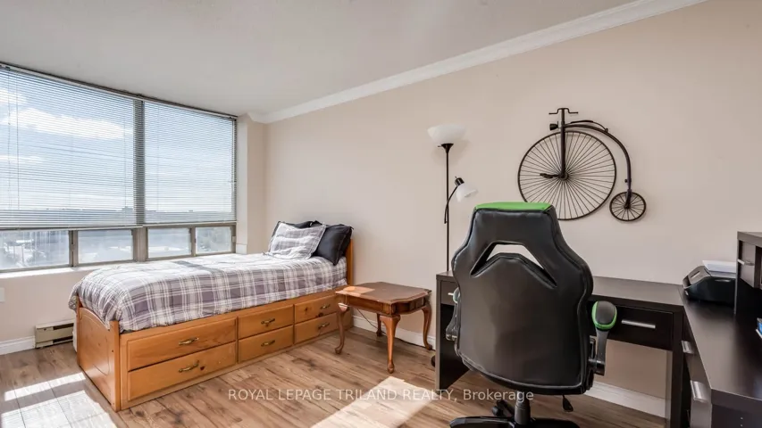 +"PublicRemarks": "Welcome to 695 Richmond Street-an established 18-storey condominium in the heart of vibrant Richmond Row, offering exceptional convenience and urban lifestyle. This well-appointed 1 bedroom + Bedroom/Den "Canterbury" model provides approximately 940 sq ft of thoughtfully designed living space, ideal for professionals, students, or investors alike. Enjoy a bright, open-concept layout with expansive windows that fill the living areas with natural light and showcase dynamic city views. Updated wood laminate flooring flows throughout, creating a clean, modern feel. The Eat-in kitchen is both functional and stylish, featuring ample cabinetry, full appliance package, and seamless connection to the main living space-perfect for everyday living or entertaining. The spacious primary bedroom offers generous closet space, while the versatile den is ideal for a home office, 2nd bedroom ,study area, or guest space. Conveniently located 4pc bathroom just outside the bedrooms. Additional highlights include in-suite laundry with storage , and one underground designated parking space .Residents benefit from a secure, professionally managed building with 24-hour concierge service and newly updated premium amenities on the 2nd floor including an indoor pool, whirlpool, sauna, fitness centre, and rooftop patio. An efficient geothermal heating and cooling system keeps the condo comfortable year round. Located steps from restaurants, shopping, entertainment, Victoria Park, city wide bike trails, a grocery store, direct transit access to Western University, Fanshawe College, and major hospitals, this is downtown living at its best. Vacant and ready for immediate possession, this is an outstanding opportunity for both end-users and investors seeking a prime London address."