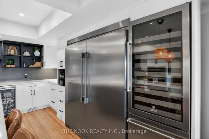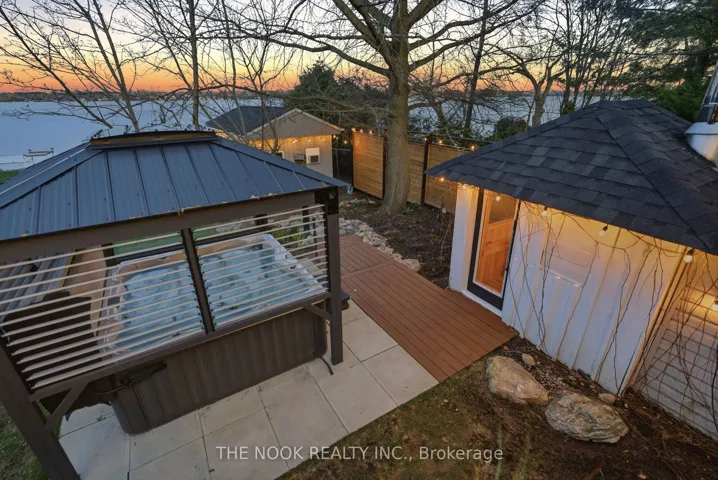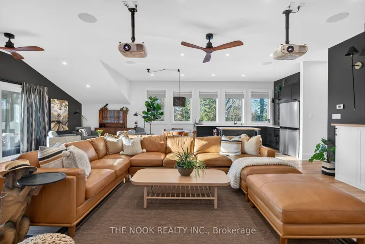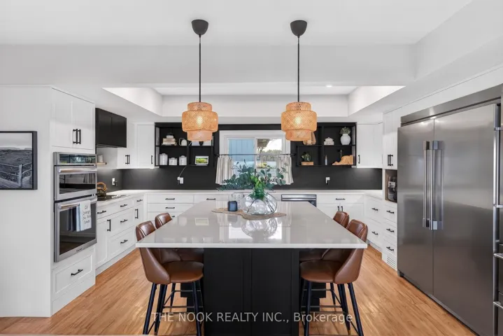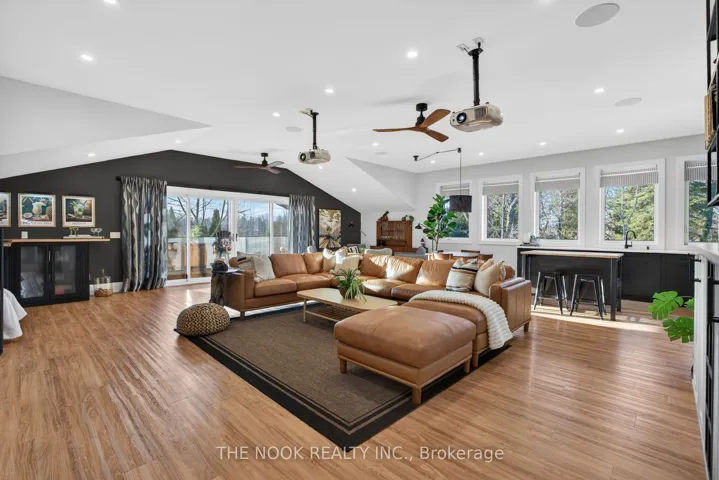+"PublicRemarks": "A rare waterfront estate offering uncompromising luxury, privacy, and multi-generational versatility, this fully reimagined residence presents a refined lakeside lifestyle defined by architectural clarity, elevated design, and exceptional south-facing views. Rebuilt in 2023 with over $1M in curated upgrades, the home blends modern sophistication with effortless livability, delivering comfort, scale, and understated elegance. Expansive principal living spaces are anchored by picturesque lake-facing windows that flood the interior with natural light and open to a composite terrace designed for quiet mornings, sunset entertaining, and year-round connection to the water. The kitchen is executed with precision and restraint, featuring quartz surfaces, an oversized island, premium appliances, and bespoke cabinetry integrated into the open-concept layout. Designed for privacy and flexibility, the residence includes a serene upper-level loft retreat with kitchenette, bar, and screened-in terrace, along with a fully finished walk-up lower level offering a second kitchen and generous living space, ideal for extended family or discreet guest accommodation. Outdoors, the property is composed as a private waterfront sanctuary with direct lake access, custom dock, expansive entertaining areas, fire feature, hot tub pavilion, and a newly constructed sauna. An unfinished bunkie with hydro offers future potential for guest accommodation, studio, or additional living space. Behind the aesthetics, the home is supported by dual HVAC systems, dual 200-amp service, new septic (2023), upgraded water filtration, spray foam insulation, and integrated security. The insulated three-car garage and workshop adds a WETT-certified fireplace, EV charging, and dedicated workspace with private bath-crafted for those seeking a true waterfront legacy estate."
