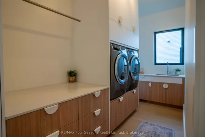 +"PublicRemarks": "Completed in 2025, this custom-built home offers over 5,700 sq ft of thoughtfully designed living space with a focus on quality, comfort, and lifestyle. The main level features a standout kitchen with a double island, La Cornue range, double Liebherr fridge and freezer, two Smeg dishwashers, a built-in AEG coffee maker, and a separate butler's pantry for added prep and storage. A main floor primary bedroom adds convenience and flexibility. Enjoy vaulted ceilings and a wood-burning fireplace that anchors the living space, adding warmth and character. The home includes 5 bedrooms and 5 bathrooms, along with a fully finished lower level featuring heated polished concrete floors, a dedicated gym area, sauna, and an impressive 22' x 16' golf simulator room complete with screen, mat, and turf. A fully equipped bar with a commercial-grade bodega fridge and dishwasher completes the space. Taxes have not yet been assessed"