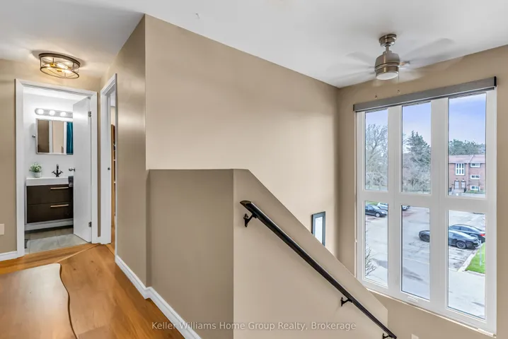 +"PublicRemarks": "Welcome to this beautifully renovated, centrally located townhouse offering the rare convenience of four bedrooms all on one level. Ideally situated near shopping, transit, and one of Guelph's most enjoyable dog parks, this home combines comfort, functionality, and community living. The main floor features a bright and spacious layout, seamlessly integrating the kitchen, laundry area, and a convenient two-piece bath with an oversized family room. Sliding doors lead to a private balcony overlooking a serene shared greenspace with mature trees, providing a peaceful outdoor retreat. Upstairs, you'll find four generously sized bedrooms, including a large primary with a four-piece ensuite. The remaining bedrooms share a second full four-piece bathroom. The entire upper level has been fully renovated and freshly repainted, and the home is completely carpet-free for a clean, modern feel. One of the standout features of this property though, is its strong sense of community. Many residents have called this complex home for years-even decades-making it a stable and welcoming environment where listings are rarely available. The condominium is well managed, with recent updates including new windows throughout. A fantastic opportunity to own in a sought-after, tightly held community-don't miss it!"