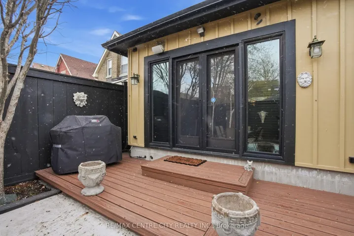 +"PublicRemarks": "Welcome to this beautifully restored 2.5-storey Arts & Crafts century home, perfectly blending timeless character with high-end modern updates in the heart of Old East Village. Meticulously maintained and fully renovated, this exceptional home offers 3 bedrooms, 3 bathrooms, and a single-car garage in one of the city's most vibrant and evolving neighbourhoods. From the moment you arrive, the curb appeal impresses with a charming covered front porch, thoughtful landscaping, wrought iron fencing and classic shutters. Inside, the main floor showcases rich hardwood flooring and a thoughtfully designed layout ideal for both everyday living and entertaining. The stunning chef's kitchen features ceiling-height cabinetry, granite countertops, a large island, stainless steel appliances and a beautiful custom bar cabinet. The dining room is full of character with elegant wainscoting, picture windows and designer wallpaper. At the rear of the home, the inviting family room offers slate flooring, a gas fireplace and extensive custom built-ins, with patio doors leading to a private, fully fenced landscaped courtyard complete with a concrete patio and composite decking. Upstairs, the second floor features a spacious primary bedroom with double closets, a spa-inspired bathroom with an oversized glass tile shower and two pedestal sinks, a dedicated office space with built-in cabinetry, and convenient second-floor laundry. The third floor offers a bright and versatile bedroom retreat with hardwood flooring & two skylights. The fully finished basement adds incredible flexibility with an additional bedroom, kitchen, ample storage and a beautifully appointed bathroom featuring a glass tile shower, soaker tub and vanity. Located just minutes from the Western Fair Market, the exciting Kellogg Lane redevelopment and surrounded by local shops, restaurants, breweries and cultural landmarks like the Aeolian Hall. This is a rare opportunity to own a truly special home in a thriving community."