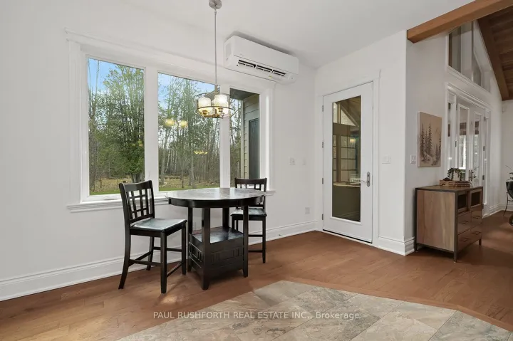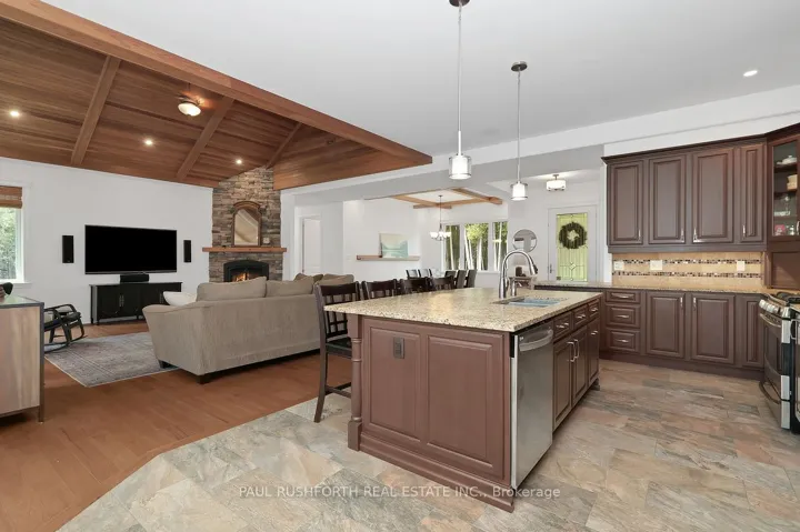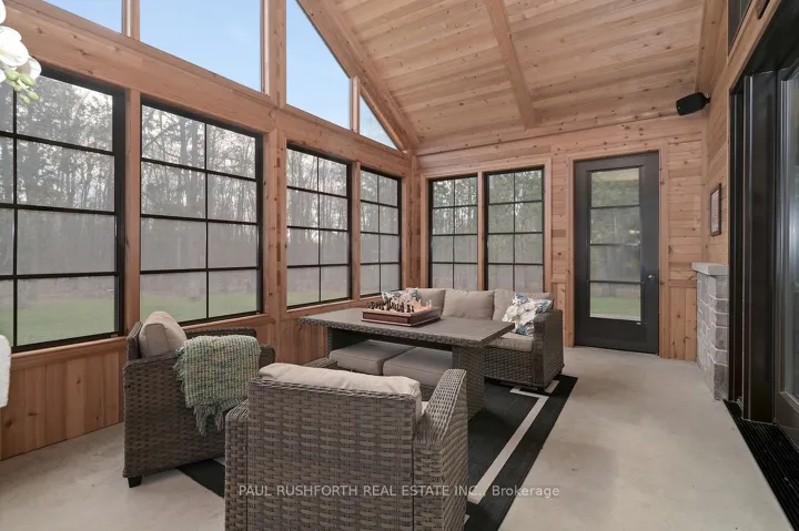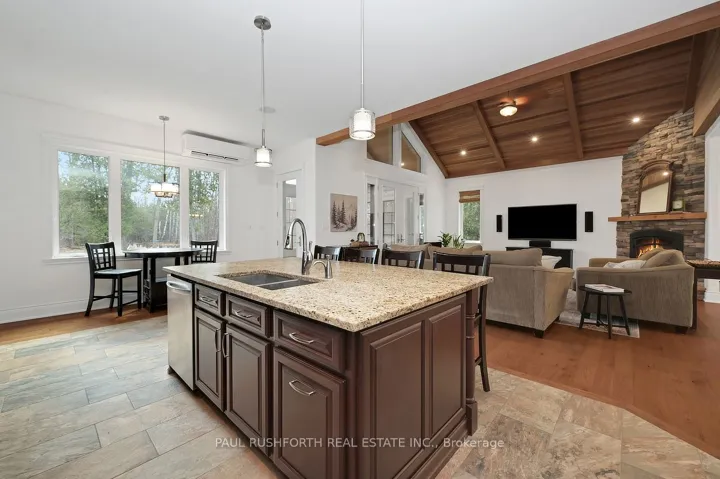 +"PublicRemarks": "Timeless luxury and professional utility on just under 9 acres. Experience unparalleled privacy in this spectacular 2014 custom built bungalow. Built slab on grade, this home features radiant in-floor heat, a gorgeous chefs kitchen, inviting 3-season sunroom and high-end finishes throughout. The grand living room impresses with soaring cedar ceilings and stone gas fireplace. Enjoy the spacious primary suite with walk-in and 4pc ensuite along with two other generous bedrooms and an additional full bath. Outside you will find acres of trails, a small spring-fed pond and best of all - a massive 36' X 72' shop. This workshop has it all: oversized doors, in-floor heating and it's so well kept you could eat off the floors. Some other bonuses: in-house sound system with individual room control, extensive draining system, high-end septic system, low-maintenance composite and stone exterior, high-speed internet and so much more. This turnkey property offers a lifestyle without compromise."