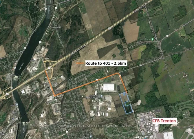 +"PublicRemarks": "20.3 acres of industrial land in Quinte West available for purchase on the East side of Trenton's North Murray Industrial Park. Zoned GM - General Industrial. Municipal services are available through the North Murray industrial park, drawings available. Draft site plan for commercial self-storage facility on the North 10 acres of the property is available. Access to the property is from RCAF Rd which is on a designated unrestricted loads route approximately 2.5km from the nearest Hwy 401 entrance. The South lot line of the property is adjacent to the CP rail line, and a rail spur may be possible. Three phase power available. North area of the property is capable of fitting a 200,000 sf single building. Property is immediately to the North of CFB Trenton."
