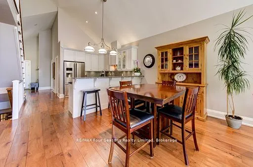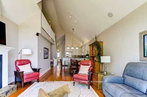 +"PublicRemarks": "The MILL POND in the heart of Thornbury presents a great waterfront opportunity This beautifully maintained 4 bedroom bungaloft is the best location in this small enclave of homes where nature meets peaceful contemporary living.This million dollar unobstructed WATERFRONT VIEW offers peace and tranquility while watching the activities of swans,ducks,egrets,beavers,otters and more.Yet only a few minutes walk to the main street of Thornbury with it's boutique shops,art galleries and restaurants.Stroll down to Bayview Park,the marina or fish loadder on the dam.For skiers Georgian Peaks private club is only a 5 minute drive and 15 minutes to Blue Mountain and the other private clubs.This end unit bungaloft is the largest floorplan with the PRIMARY BEDROOM with ensuite on the main level plus one further bedroom on the main level that could be used as an office.Open plan main floor living with soaring cathedral ceilings,hemlock flooring and gas fireplace is open to the dining area and custom kitchen with island bar.French doors off the living room open to the patio area overlooking the MILL POND.The lofted second level offers two further bedrooms with a large shared 3 pce bathroom as well as a sitting area looking down to the main floor.Thoughtfully planned and constructed with extra insulation in the living room and primary bedroom,energy efficient windows,HRV system and on demand hot water heater.The attached double car garage is insulated and has an inside entry door.A shared dock with muskoka chairs offers a place to watch the sunrises as well access for your kayak or canoe.Storage racks by the dock are for the use of the residents"