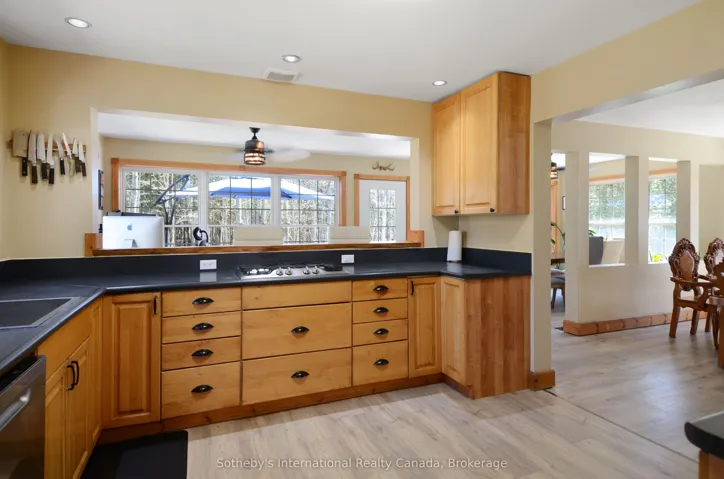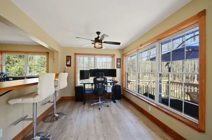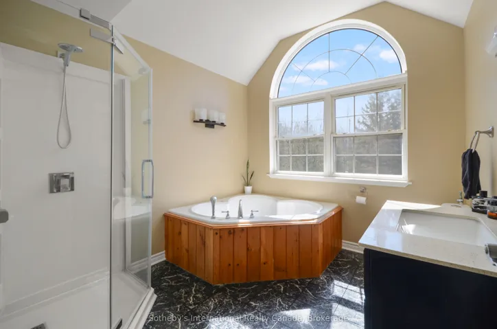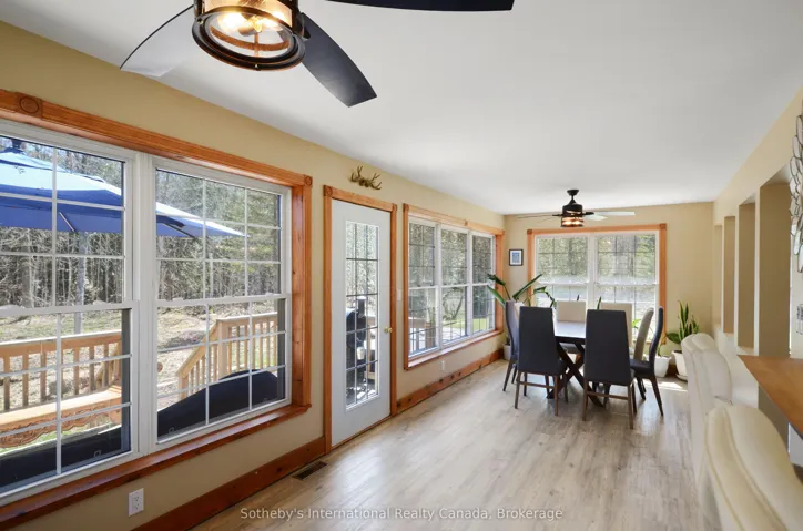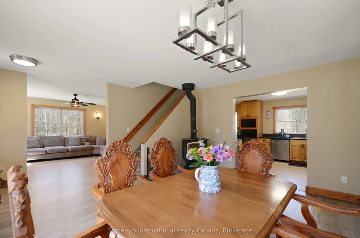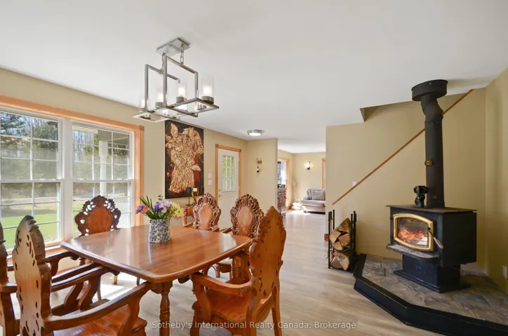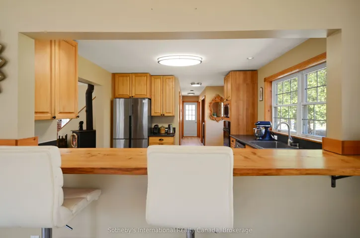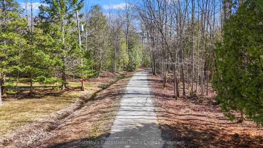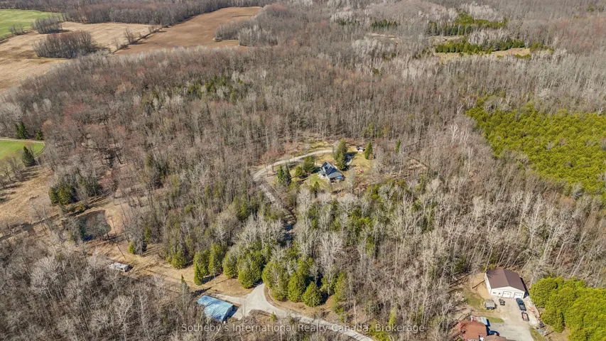 +"PublicRemarks": "Encompassing 93 pristine acres of absolute privacy, this exceptional country estate offers a rare blend of refined living and natural splendor just minutes from the fairways of Cobble Beach and the conveniences of Owen Sound. A scenic, winding drive through a mature treed canopy leads to a meticulously renovated three-bedroom, two-bathroom residence where modern elegance meets rustic warmth. The heart of the home features a designer kitchen showcased by a stunning live-edge countertop, while the sun-soaked living areas are anchored by a cozy woodstove and offer seamless access to an expansive deck through convenient walk-outs. Additional versatility is found in the substantial heated outbuilding, a multi-purpose space ideal for a studio, workshop, or garage (with EV Tesla Charger), complete with a secondary room offering bunkie potential and its own walk-out. The diverse landscape is a sanctuary for the outdoor enthusiast, featuring an extensive trail network through ancient forests, approximately 18 workable acres for agricultural or equestrian pursuits, and a tranquil spring-fed pond alongside a creek that flows directly into nearby Lake. This is more than just a home; it is a sprawling nature lover's paradise designed for those seeking peace and prestige in one of the region's most sought-after locations. Recent upgrades include 22 solar panels , water heater, water softener, UV filter."