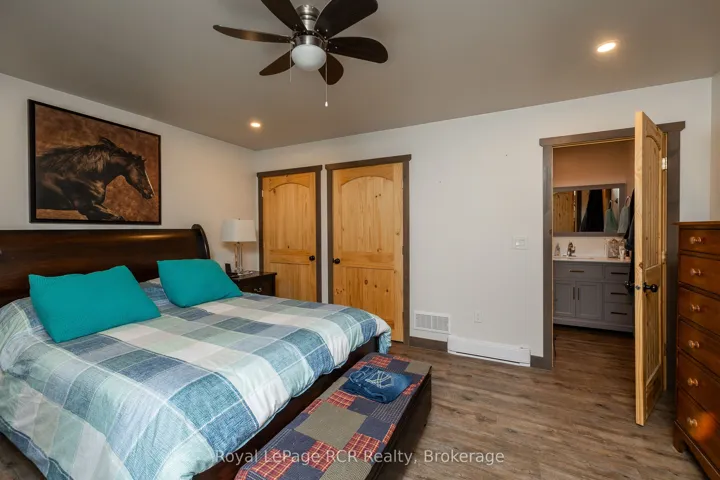 +"PublicRemarks": "5+ acres with Riverside homes in a private setting. Two full-time residences in excellent condition are situated to enjoy phenomenal views of the Norm Reeves Creek. Main residence is approximately 1300 square feet with open living spaces, full finished walkout basement and an attached garage. There is also a 1020 square foot home with 2 bedrooms, 1 1/2 baths and open concept main floor living. Both homes have an attached garage, propane heat, decks and patios overlooking the flowing water. An additional guesthouse has also been used as a full-time home. There is a tennis court, lots of open yard areas and room for a horse or smaller animals. Extra perks include abutting trails and proposed community playground for adjoining landowners. Located on a paved road with easy access to Durham, ON or Mount Forest, ON. Listing info + measurements are for the main (Blue) house, additional measurements and info available for the other house and guest house."