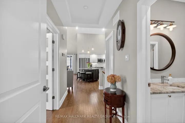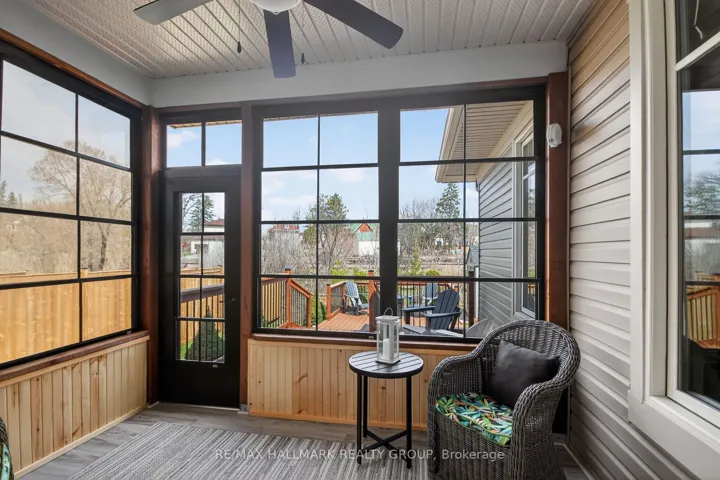 +"PublicRemarks": "Discover a fresh take on easy living in the peaceful village of Carp. This thoughtfully designed bungalow blends modern style with everyday comfort. Step inside the spacious foyer to an open concept interior featuring soaring vaulted 9' ceilings, elegant coffered details and tiled/hardwood flooring. Quality finishes entail; solid stone countertops, an ambient two sided gas fireplace in the living room and front Den/office, and an inviting screened-in porch overlooking the private backyard with ample deck space and backing on the railway tracks (only used once a week) thats perfect for relaxing or entertaining. Other features include an oversized garage, HRV system and a high-efficiency furnace with A/C and zoned climate control for year round comfort. Enjoy a vibrant community lifestyle just steps from your door with local dining, the popular Carp Farmers' Market and annual Carp Fair. Outdoor enthusiasts will appreciate nearby cycling routes.This home offers a low maintenance lifestyle for simple easy living."