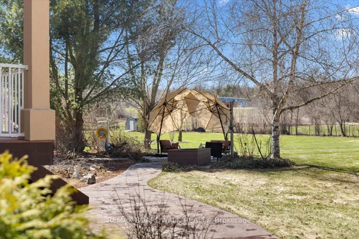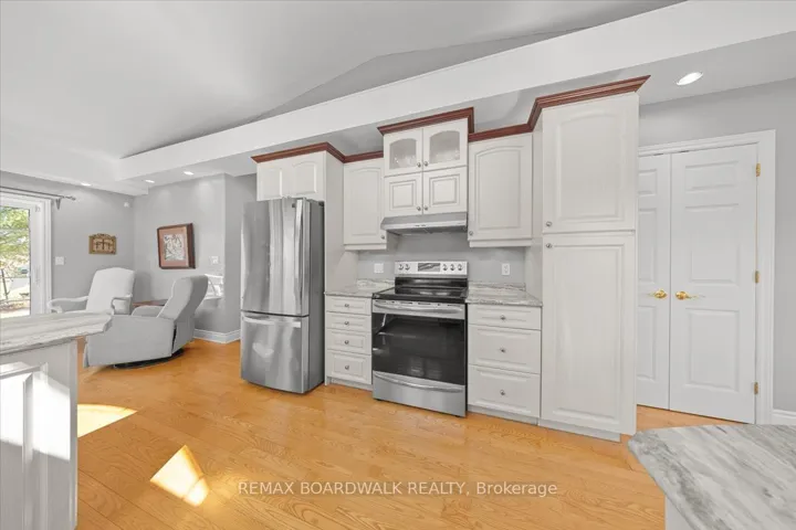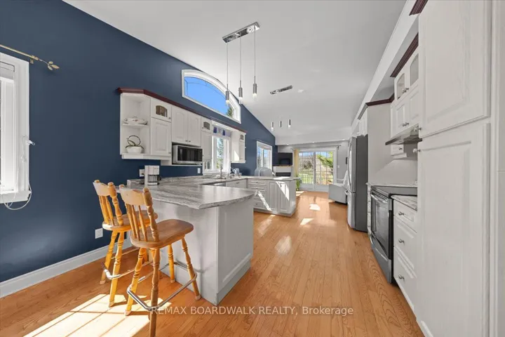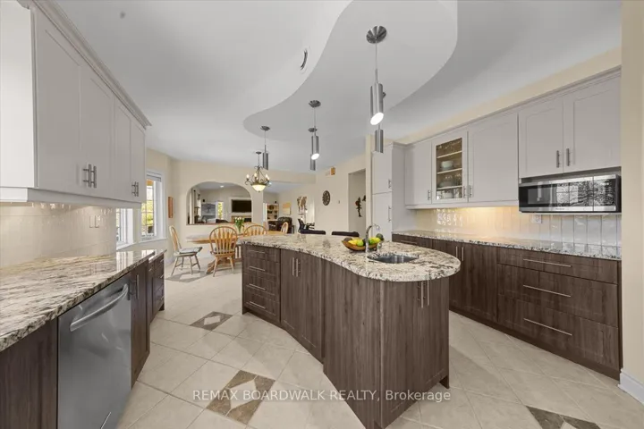 +"PublicRemarks": "Purpose-built multi-generational residence on a private 1.1-acre lot just outside the village of Cumberland, designed w/two independent living spaces & separate entrances. Exterior features include a stucco façade, patterned concrete walkways, circular paved driveway, & multiple garages. Shared foyer w/tile flooring, 11' ceilings, architectural cut-outs, glass block inlays, & recessed lighting provides access to both dwellings. Main residence offers 3+1 bedrooms and 3.5 bathrooms w/9' ceilings, hardwood flooring, & high baseboards throughout. Main floor den with coffered ceilings, panoramic window, & French glass doors. Kitchen is centred around a sculpted centre island w/granite countertops, two-tone soft close shaker cabinetry, secondary prep sink, pot drawers, valence lighting, fluted hood fan, glass accent cabinets, & family-sized walk-in pantry. Dining area w/tile flooring & radiant heat connects to a family room w/cathedral ceilings, corner windows, & gas fireplace. Main floor includes laundry & powder room w/ glass top vessel sink. Upper level features a primary suite w/bay window, walk-in closet, & 4-piece ensuite w/double vanity & glass shower. Two additional bedrooms & a 4-piece main bath complete the level. Finished lower level includes Rec room, an additional bedroom, 3-piece bath, workshop, & mechanical/storage areas, plus access to the secondary dwelling. Sun-filled secondary bungalow-style residence features wide hallways, hardwood flooring, & accessible design. Main level includes primary bedroom w/walk-in closet & 4-piece ensuite, additional 3-piece bath w/walk-in shower & laundry. Open kitchen w/transom windows & breakfast bar, bright dining area, & living room w/gas fireplace & patio door to private deck. Lower level offers Rec room w/soundproof ceiling, second bedroom, den, & full bath. Both dwellings have their own rear covered composite decks overlooking private grounds. Ideal for multi-generational living w/independent yet connected spaces."