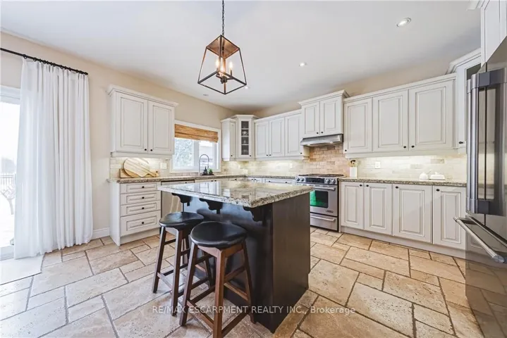 +"PublicRemarks": "Welcome Home! Take full advantage of this stunning 2-storey, 4-bedroom, 4-bathroom residence, ideally located on Hamilton's prestigious South Mountain in the highly sought-after Country Ridge Estates community-where pride of ownership is evident throughout. Arrive to impressive curb appeal with an exposed aggregate double driveway and step inside to a meticulously maintained interior. A grand foyer welcomes you into a bright, open-concept layout designed for both everyday living and effortless entertaining. The main floor showcases elegant marble and hardwood flooring, a spacious chef's kitchen with ample counter space, double sink, and a large island, seamlessly flowing into the inviting family room featuring a gas fireplace set against a striking stone feature wall. Walk out from the kitchen to a professionally landscaped, fully fenced backyard offering unobstructed sunrise views-perfect for relaxing or entertaining-complete with a brand new hot tub. Enjoy added luxury with a built-in surround sound system on both the main level and in the fully finished basement. Downstairs, you'll find a custom wet bar with a 7-foot island, solid wood cabinetry, quartz countertops, an additional3-piece bathroom, and a cozy gas fireplace-ideal for hosting. The fully insulated garage is equipped with upgraded doors and high-lift system openers, offering versatile use as a hybrid garage, gym, or workshop. Conveniently located close to all amenities, shopping, parks, and just minutes to the Lincoln M. Alexander Parkway, this home also falls within the catchment for Bishop Tonnos Catholic Secondary School."