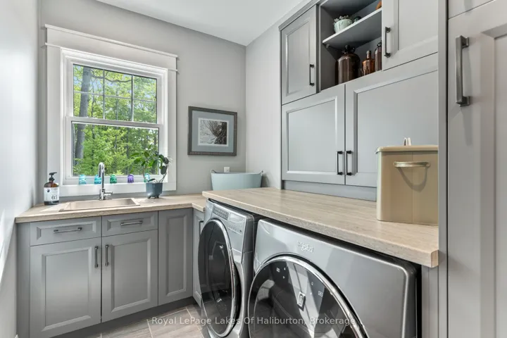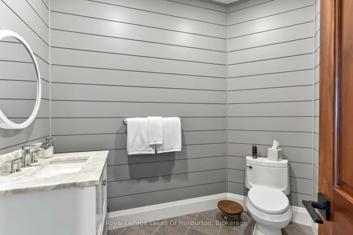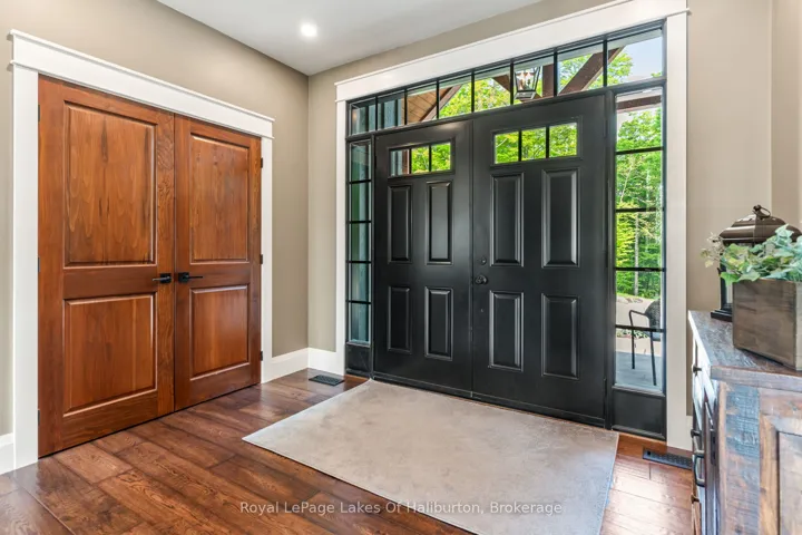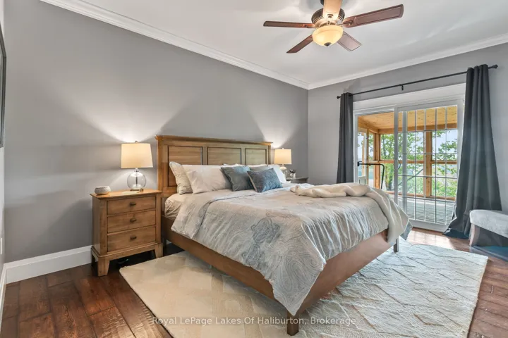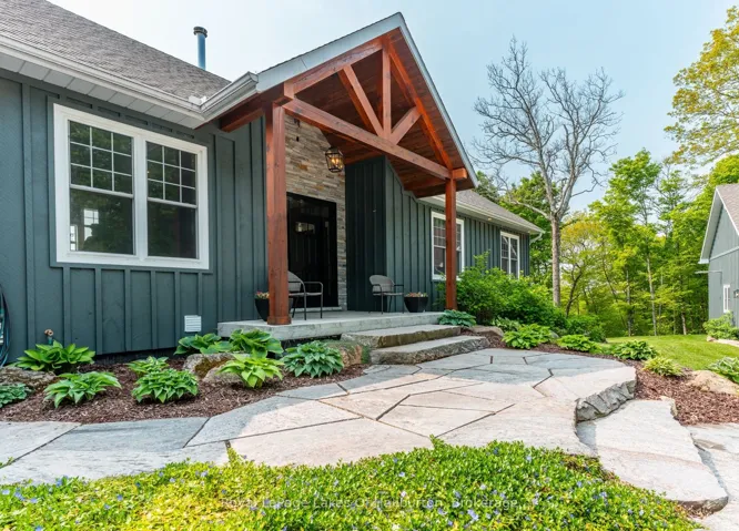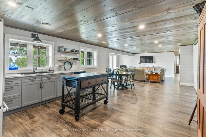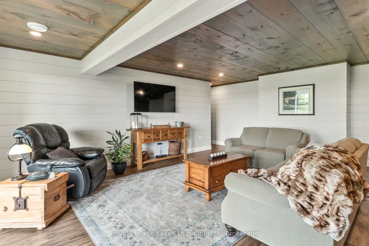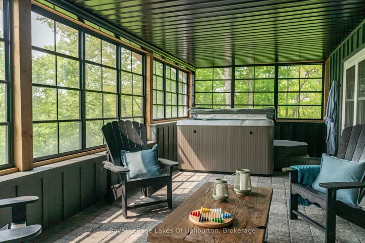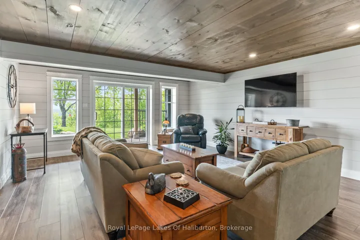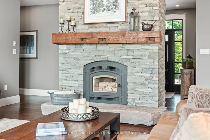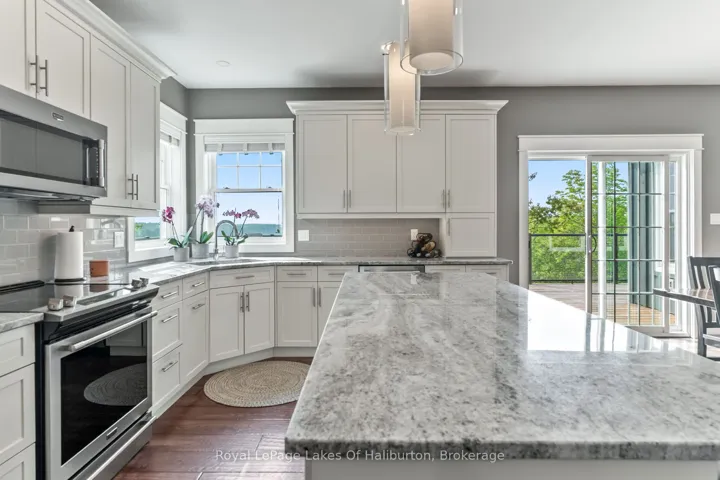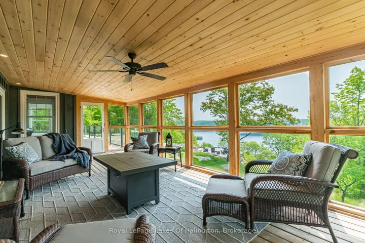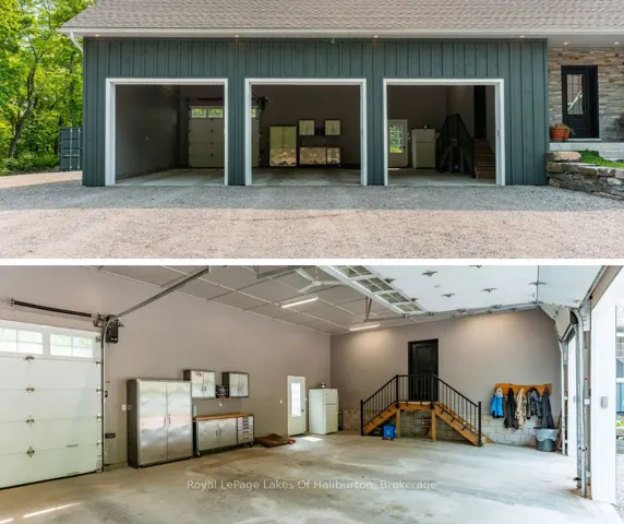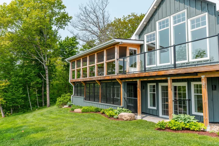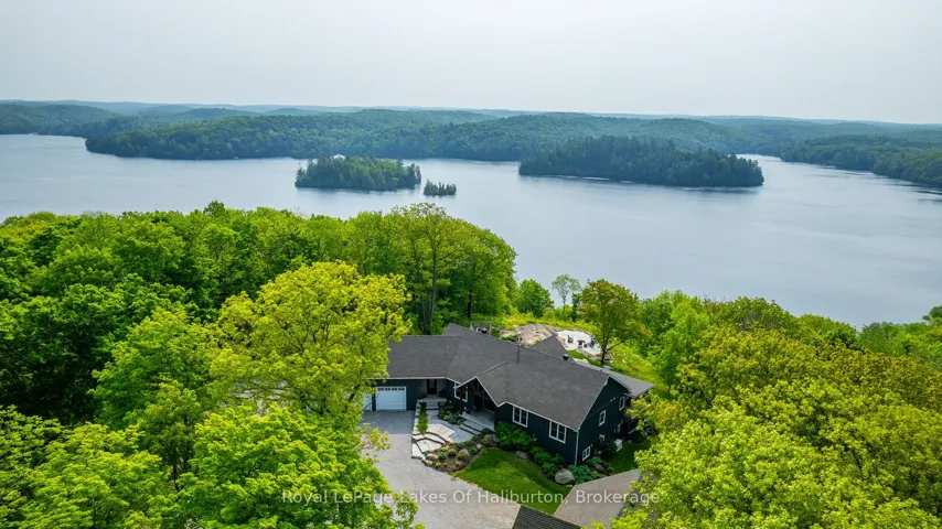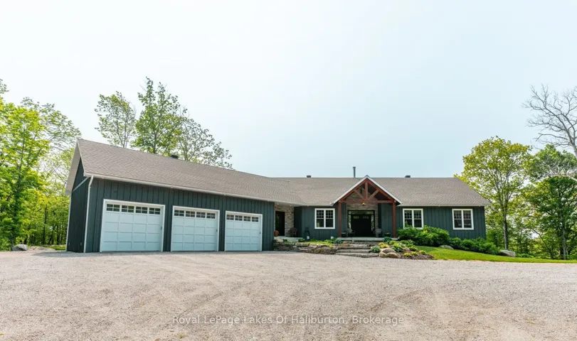+"PublicRemarks": "Nestled on 54 sprawling acres along the private shores of Loon Lake, this meticulously maintained estate offers an unparalleled blend of luxury and wilderness. With 800 feet of deep waterfront and over 5,000 square feet of refined living space, the property is a masterpiece of design and privacy. The journey begins at the timber-frame porch, leading into a grand Great Room where a floor-to-ceiling dry-stack stone fireplace and expansive windows invite breathtaking panoramic views indoors. The heart of the home flows seamlessly to an 850-square-foot glass-railed deck, perfect for watching the sunrise over a tranquil horizon. The kitchen is a chef's delight, featuring stainless steel appliances and soft-close cabinetry, while the main-floor primary suite serves as a true sanctuary with heated ensuite floors and direct access to a screened-in Haliburton Room.The home's versatility continues on the lower level, a walk-out space equipped with two additional bedrooms, a second kitchen, a games room, and a cozy living area. This level opens to a dedicated hot tub room, where stone flooring and stacking windows blur the line between indoor comfort and the natural beauty outside. Beyond the main residence, the property is designed for the ultimate hobbyist, featuring a heated triple garage with a drive-through bay and a separate 1,800-square-foot heated workshop. Modern essentials like a full-property generator, 200-amp service, and wide, accessible hallways ensure peace of mind. Outside, the landscape is dotted with perennial gardens, dry-stack stone walls, and a natural granite firepit. Whether you are hunting in your own backyard, exploring nearby snowmobile trails, or taking a short ATV ride down to the deep-water dock, this estate represents the gold standard of lakeside living."