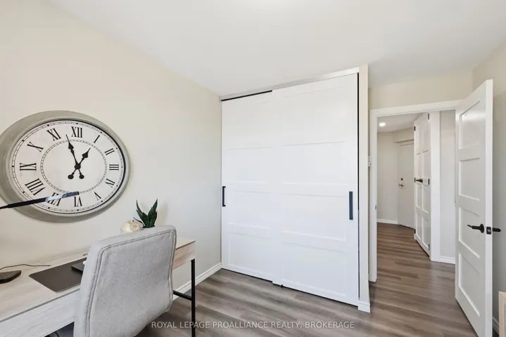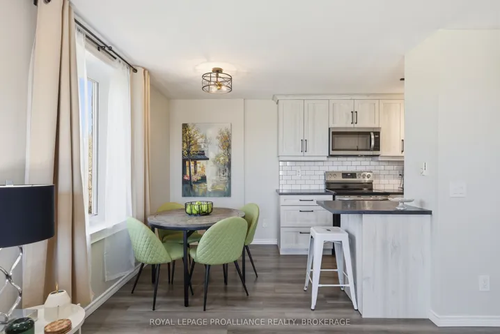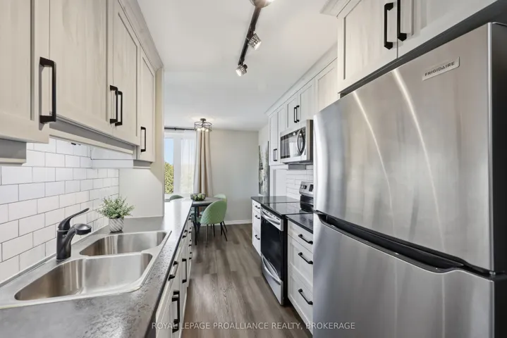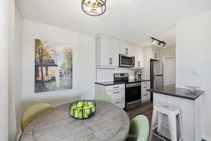 +"PublicRemarks": "You'll be impressed by this magazine-worthy, fully renovated 2-bedroom corner condominium suite. Bright and inviting, this home welcomes you the moment you arrive. The stunning custom kitchen features floor-to-ceiling cabinetry, soft-close drawers, under-cabinet lighting, a stylish tile backsplash, and stainless-steel appliances. It opens seamlessly into the living and dining areas, complete with patio doors leading to your private balcony-perfect for enjoying breathtaking sunsets and unwinding at the end of the day. Neutral wide-plank flooring runs throughout the principal rooms, creating a cohesive and modern aesthetic. Both bedrooms include redesigned closets with custom organizers for optimal storage. The beautifully renovated bathroom offers a tub/shower combination, custom vanity, updated fixtures, and tile flooring. Additional highlights include a convenient utility room for extra storage and an exclusive-use parking space. Outdoor enthusiasts will love having the Rideau Trail just steps from the building. Ideally located on public transit routes, close to schools, and surrounded by everyday amenities-this is a home that truly has it all."