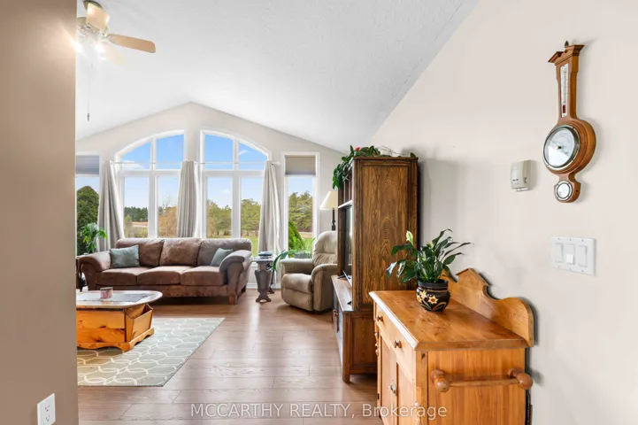 +"PublicRemarks": "Where Comfort Meets Countryside - Welcome to your private 4-acre retreat-where peaceful country living meets modern comfort. This beautifully maintained bungalow offers 3 bedrooms, 2 bathrooms, and a bright, open-concept layout designed for effortless main floor living, featuring 8-foot ceilings and 38inch wide hallways for an enhanced sense of space.The sun-filled kitchen showcases stainless steel appliances and large windows, flowing seamlessly into the dining area-perfect for entertaining. A walkout leads to a charming porch overlooking your own pond, creating an ideal setting for indoor/outdoor living, morning coffee, and sunset views.The spacious primary suite offers a relaxing escape with a 5-piece ensuite and generous his-and-hers closets. Two additional bedrooms provide flexibility for family, guests, or a dedicated home office.A full unfinished basement offers excellent potential, ready for your personal vision. Outdoors, the property is perfectly equipped for hobbyists and those seeking a more self-sufficient lifestyle, featuring a 24' x 30' workshop, detached 24ft X 24ft 2-car garage, pond, garden shed, and expansive garden beds.With major updates already completed and convenient access to Highway 10, this home delivers the perfect balance of privacy, functionality, and commuter-friendly location. A rare opportunity to own a turnkey country property with space, versatility, and lasting appeal."