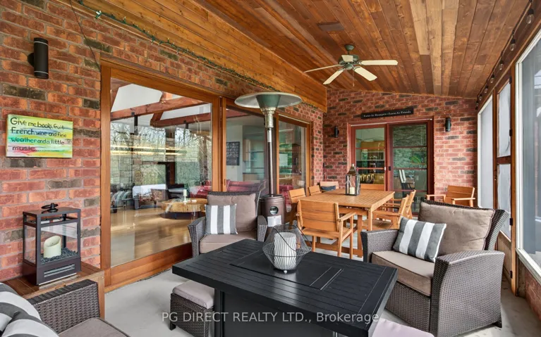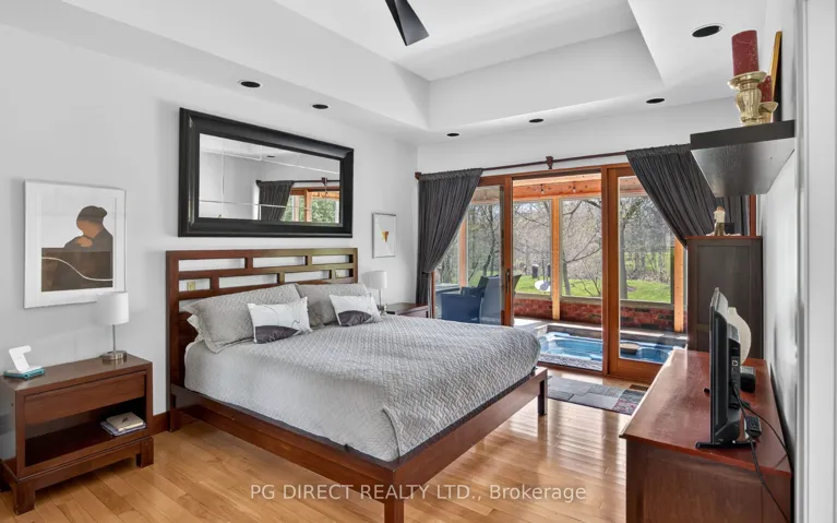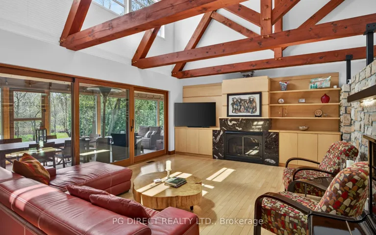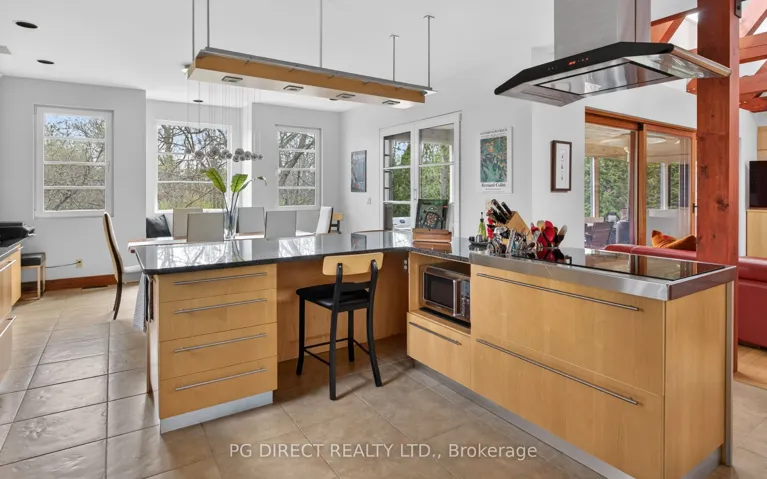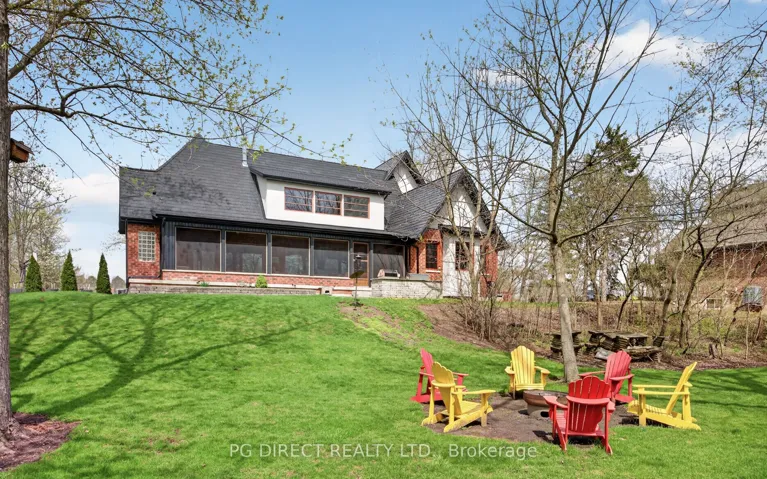 +"PublicRemarks": "Visit REALTOR website for additional information. Luxury Country Living Discover a rare opportunity to own a custom home design & built home perfectly situated on a private, picturesque acre lot. The rear half-acre gently slopes down to a tranquil creek, offering serene views and unmatched privacy. Welcoming foyer with dramatic art wall and spacious living room ideal for entertaining. In-floor heating of all tile surfaces. Modern kitchen featuring a double oven, convection cooktop, upright fridge & freezer, lärge custom sink, bright dining area with double doors to screened porch. Pantry & laundry room conveniently located. Stylish single bathroom for guests. Private primary bedroom suite with glass wall & sliding door for direct access to screen porch with sunken hot tub. Ensuite bathroom, den with gas fireplace and soaring 16' ceiling. Outdoor Living includes a large screened porch overlooking the rolling hill, outdoor kitchen with both charcoal and gas barbecues. Peaceful natural setting with mature trees and creek views. Upper Level above garage has an expansive living area with extensive in-wall storage, 3 designer bedrooms, all with 16' ceilings, separate3-piece bathroom & dedicated storage room."
