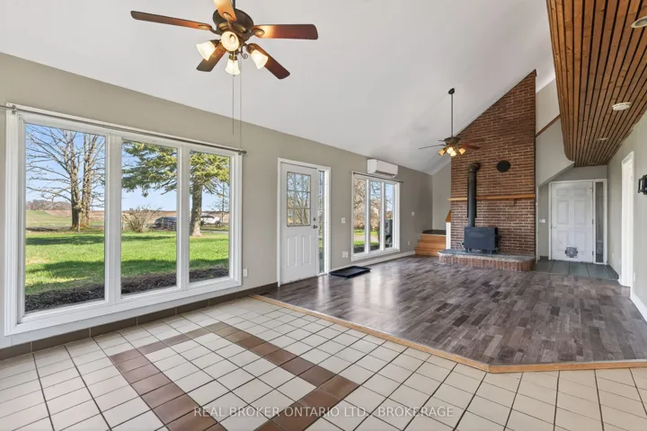 +"PublicRemarks": "Escape the noise of the city without giving up convenience! This 3-bedroom, 2-bathroom country home sits on a private 1-acre lot with paved road access! Just 10 minutes to the Village of Bath and Napanee. Enjoy stunning front-yard views of open farmland with a private backyard with level space that is ideal for kids, pets, and entertaining! Step inside to a bright, open-concept living and dining area with large vaulted ceilings, warm wood and brick accents, and natural light pouring in through large windows and patio doors leading to a west facing deck. Cozy up by the wood stove in winter, while efficient heat pumps keep you comfortable year-round.The main floor offers a functional layout with a 3-piece bath, convenient laundry, and easy flow throughout. Upstairs features two additional bedrooms and a modern 3-piece bath with a glass-tiled shower. The attached double-car garage adds flexibility for parking, storage, or workshop use. Recent upgrades include new kitchen counters, 2 updated bathrooms, and a new UV light system. If you've been searching for space, privacy, and move-in-ready comfort, 2268 Mc Intyre Road delivers!"