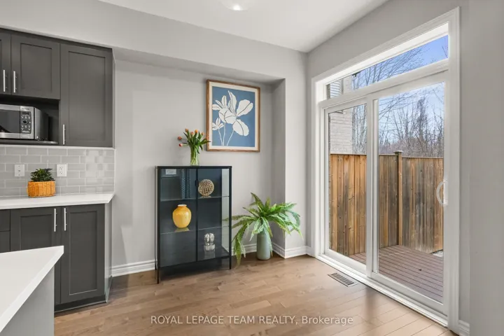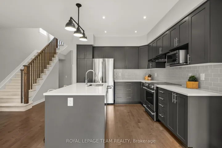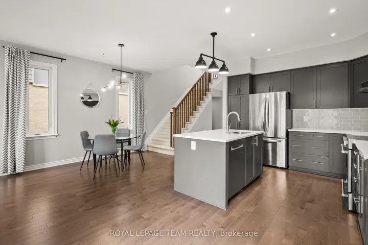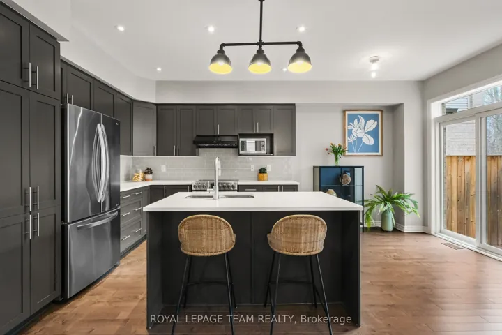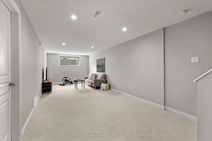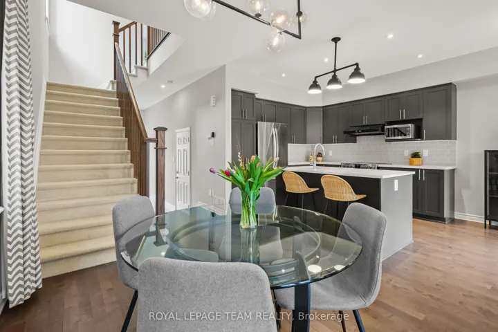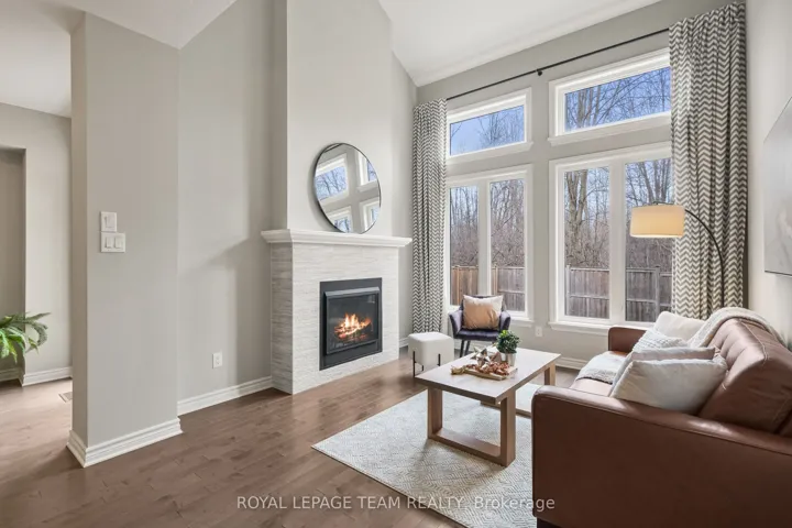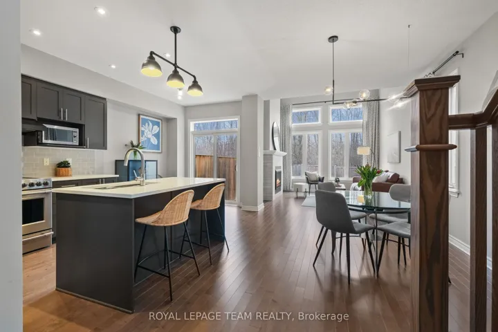 +"PublicRemarks": "Don't miss this premium, rarely offered end-unit lot with no rear neighbors. This beautifully upgraded home has been meticulously maintained and includes over $30k in professional landscaping.The open-concept main level features 9ft ceilings and maple hardwood floors. The living room offers south-facing windows, custom drapery, a cathedral ceiling, and a gas fireplace. The gourmet kitchen is equipped with quartz countertops, stainless steel appliances, a large pantry, and a plumbed island.The primary bedroom includes an upgraded ensuite with a tiled glass shower, a deep soaker tub, and a quartz vanity. All three bedrooms feature custom blinds and plush carpeting, and the second floor includes a convenient laundry room. Additionally, the finished basement serves as an ideal recreation room with ample natural light and a rough-in for a three-piece bathroom.Outside, the fully fenced backyard features a PVC deck and an impressive interlock patio with a stonework planter. The property is located in a quiet neighborhood with great schools, close to shopping and the new O-Train Extension providing direct access from Limebank to Bayview Station. Open House on 3rd of May at 2:00pm to 4:00pm."