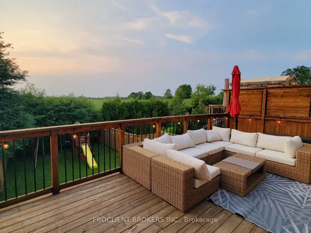 +"Inclusions": "Sofa patio furniture on upper and lower deck including one umbrella, storage deck box on deck, swing set in the backyard, basement TV, All window coverings, All surveillance/monitoring cameras and sensors (only hardware)."