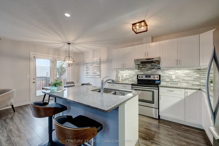 +"PublicRemarks": "Welcome to this beautifully finished 5-level multi-split end-unit townhouse, ideally located in a well-maintained complex and backing onto a scenic, private setting. Built in 2016, this impressive home offers 3 bedrooms, 2.5 bathrooms, and 1,783 sq. ft. of thoughtfully designed living space filled with natural light thanks to its desirable end-unit positioning. Step inside to a spacious and welcoming foyer with direct access to the single-car garage. A convenient 2-piece powder room is tucked away for added guest privacy, while split staircases lead you to both upper and lower levels. The second level showcases a warm, open-concept living and dining space, perfect for entertaining or relaxing. The modern kitchen features ample cabinetry, stainless steel appliances, and elegant granite countertops with a stylish backsplash. From here, step out onto your private, enclosed 6' x 12' deck-an ideal space to unwind or enjoy the warmer months. A short set of stairs leads to the third level, where you'll find a dedicated laundry area and a spacious primary retreat complete with abundant natural light and a beautiful 3-piece ensuite. The fourth level offers two additional generously sized bedrooms and a full 4-piece bathroom. The finished lower level provides a versatile rec room or games area, while an additional unfinished lower level offers excellent storage potential. This home combines space, comfort, and functionality-perfect for families or professionals alike. Located just minutes from Highways 401 & 402, shopping, parks, schools, and the Bostwick YMCA, convenience is at your doorstep. Don't miss your opportunity!"