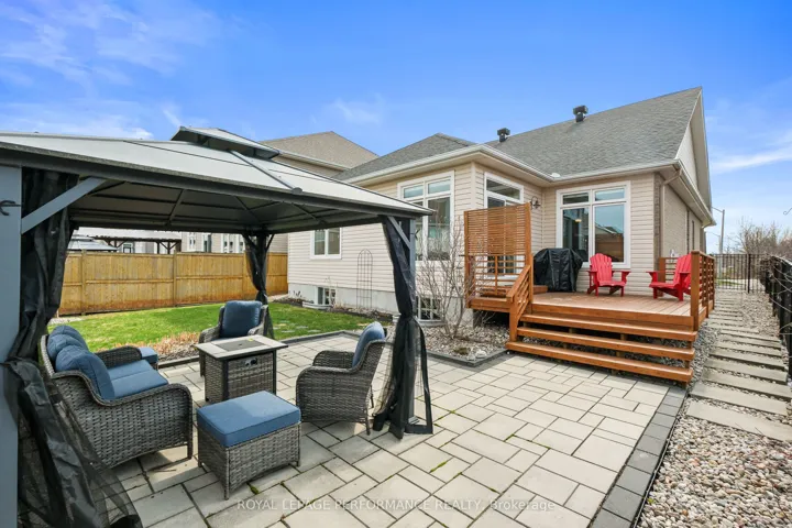 +"PublicRemarks": "Welcome to effortless living in the heart of Findlay Creek-where nature meets convenience in this beautifully appointed bungalow that feels anything but suburban.Nestled beside a conservation buffer along Findlay's Creek, this home offers a rare sense of privacy and tranquility. With no direct front-facing neighbours, you'll enjoy a serene, landscaped setting from your charming front porch-the perfect place to sip your morning coffee while overlooking your own beautifully maintained front garden and lawn.Step inside to discover the ease of true one-floor living. The open-concept main level impresses with gleaming hardwood floors and soaring 9-foot ceilings that enhance the home's bright and airy feel. The cheery kitchen features quartz countertops, custom cabinetry, and picturesque windows framing the natural surroundings.Designed for convenience, the home also offers main floor laundry-making everyday chores more efficient.The combined living and dining area is ideal for entertaining. Cozy evenings can be spent by the gas fireplace. While in warmer months, open the patio door in the versatile den and let the summer breeze flow through. Perfect as an office, playroom, or studio, this space adapts to your lifestyle.The primary bedroom is a peaceful retreat with his and her closets and a luxurious 5-piece ensuite with double vanity. Step outside to your backyard deck, complete with a gazebo where you can watch and listen to beautiful birds. An inground sprinkler system keeps the lawn lush with ease. The oversized garage with inside access makes parking and unloading groceries a breeze. The finished lower level offers increased living space with a recreation room, great for movie night, a bedroom, a 4-piece bath, and includes an elliptical machine, treadmill and a Hoist V3 home gym. Workout on your on your terms. This home has pride of ownership. Over $100,000 in upgrades. Book a showing today."