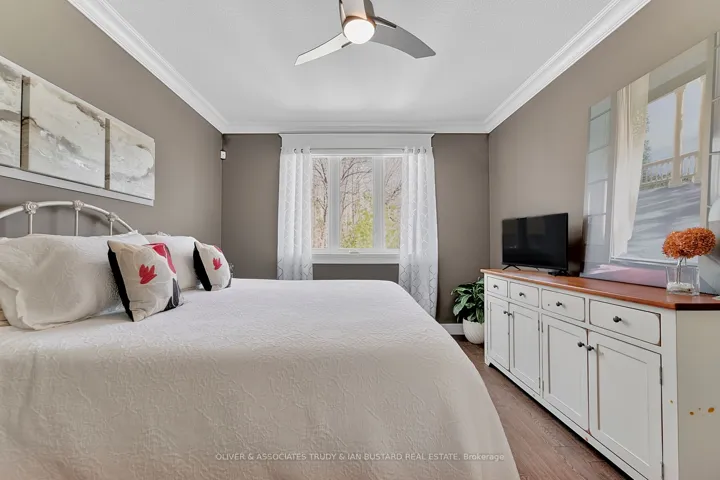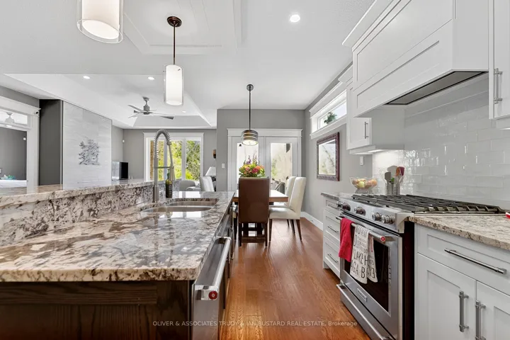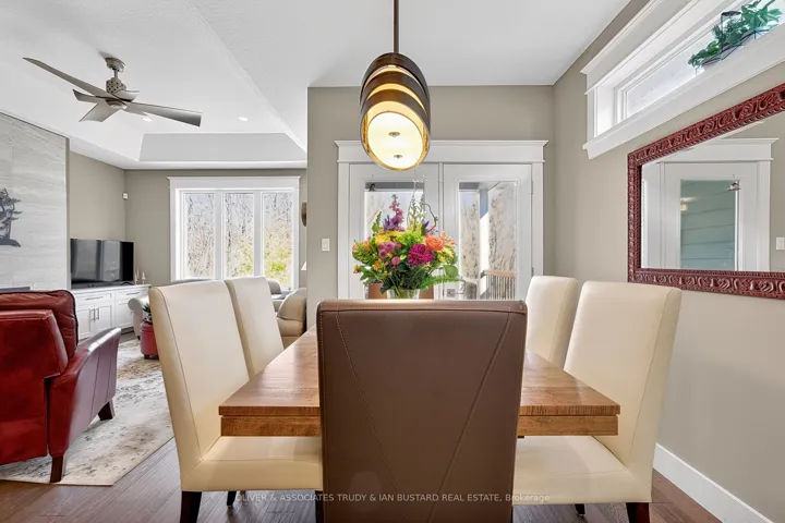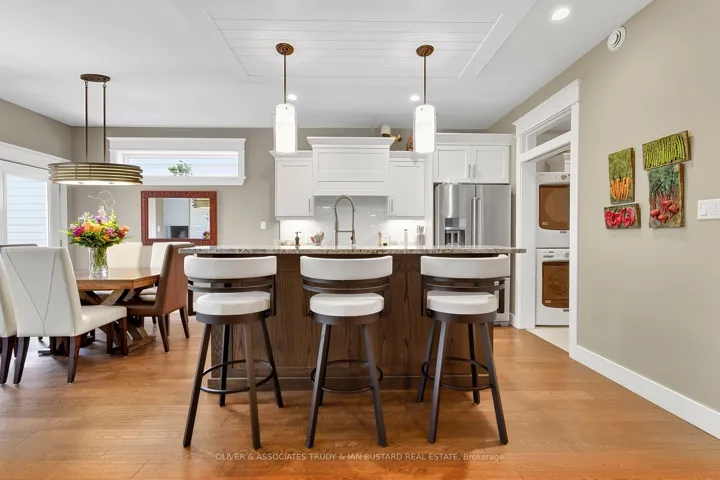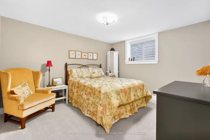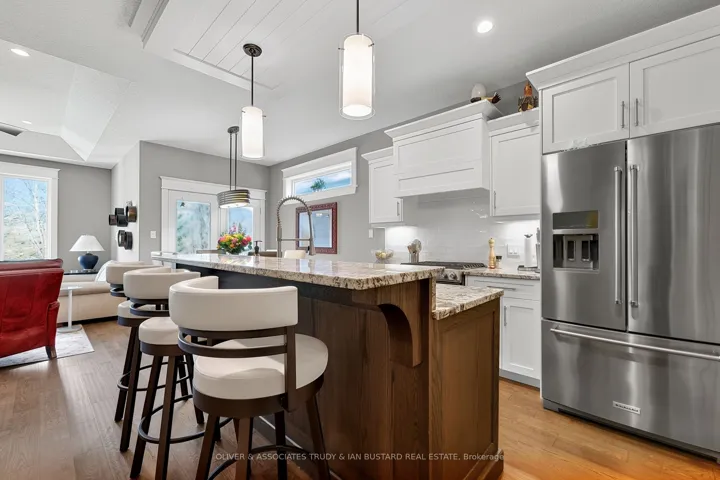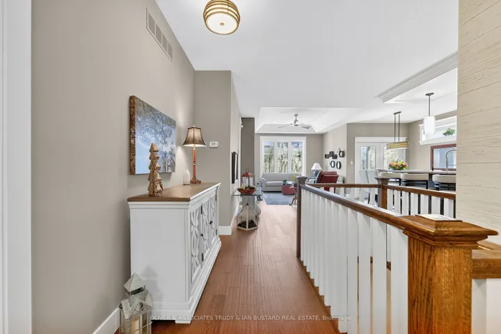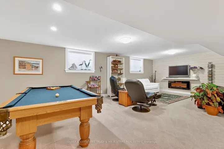 +"PublicRemarks": "Newer craftsman built bungalow by Medway Homes in the private community of Harbourside Condominiums. This enclave of 37 freehold condo's (vacant land condominium) enjoys the benefits of owning your own home and private lot with the bonus of maintenance free living by having snow removal and lawn care provided with low association fees of $250/month. Just steps to downtown, the amenities of Grand Bend and the beaches of Lake Huron but set back away from it all in a quiet upscale residential area. This is a premium lot backing onto a forest with total privacy! This home offers almost 2400 sq ft of well appointed living space with a 1380 sq. ft. open concept main floor design. Flowing with lots of natural light, engineered hardwood floors and upgrades throughout, you will be impressed starting with a large foyer with stained glass welcomes that you to the home . The living room has tray ceilings, gas fireplace and overlooks your backyard oasis. Chefs kitchen features white shaker cabinetry, granite countertops, large island and dining area that leads to the back covered patio. Main floor primary bedroom suite is complete with a high quality ensuite with custom step in shower, in-floor radiant heat and walk in closet. The main floor also includes a guest bedroom and 3 piece bathroom. The lower level enjoys a huge family room with pool table that stays, two large bedrooms and a 4 piece washroom. The outdoor living space is enhanced with a custom stone patio with a hot tub and awning. Generator and sprinkler system add value! Security and central vacuum are roughed in."