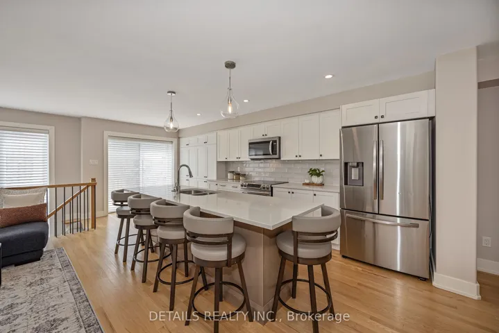 +"PublicRemarks": "Impressive Beckwith model end-unit townhome offering over 2,000 sq ft of well-designed living space. Ideally located with no direct front-facing neighbors, this home offers added privacy and extra parking options. The main floor features a stylish kitchen with quartz countertops, an oversized island with breakfast bar, and plenty of prep and storage space-perfect for both everyday living and entertaining. The open-concept layout flows seamlessly into the bright and spacious living and dining areas, ideal for hosting family and friends. Upstairs, the primary bedroom serves as a private retreat with double-door entry, a generous walk-in closet, and a large ensuite bathroom. Three additional well-sized bedrooms are located on the second floor, including one with vaulted ceilings that adds charm and character. Second-floor laundry adds everyday convenience. The fully finished basement extends the living space with a cozy family room featuring a fireplace, a full bathroom, and a versatile flex room currently being used as a fifth bedroom-ideal for guests, a home office, gym, or extra storage. Located close to William Bradley Park, walking paths, schools, and local amenities, this home offers exceptional space, functionality, and a fantastic location-an ideal fit for growing families or anyone looking for flexible living space in a desirable community."