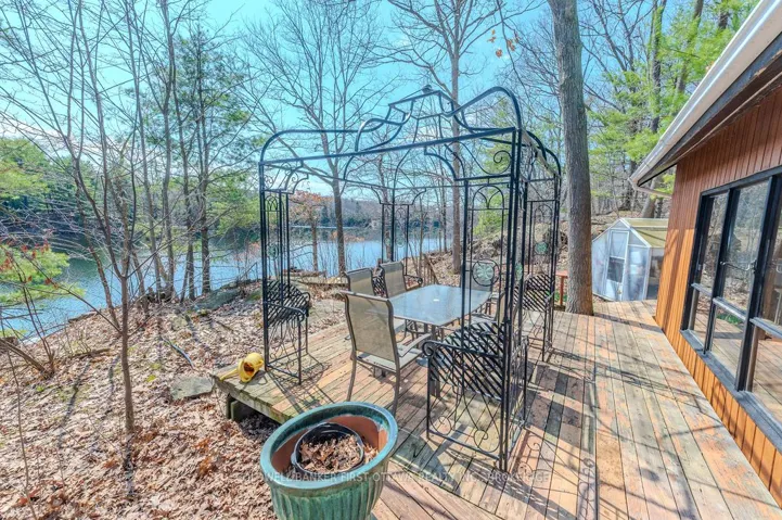 +"PublicRemarks": "Charming year-round waterfront home on serene Little Long Lake - south-facing, private, and lake life ready. Tucked into the rock with sweeping views across the water to wooded shoreline and striking rocky outcroppings, this inviting retreat is a place to unplug, reflect, and settle into the rhythm of the lake. Start the day with coffee on the dock, watch the sun travel across the horizon, spend quiet afternoons listening to the loons call and the fish jump, and wind down as the lake glows in the evening light. Inside, the open-concept design features soaring ceilings, a WETT-certified wood stove, main floor bedroom, laundry and bath, plus an upper-level primary with ensuite and a third bedroom. Enjoy peaceful waters, great swimming and fishing, and a new floating dock in place for the season. Located on a quiet, mostly one-lane plowed municipal road just outside the village of Sydenham, the property also includes a greenhouse and plenty of opportunity to bring your own vision over time. Move-in ready in places, but requires some notable TLC and repairs to restore it to pristine lakeside condition. . A private waterfront escape with year-round access and easy connection to Sydenham and Bullseye Lakes."