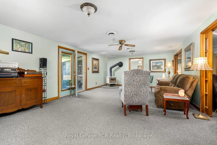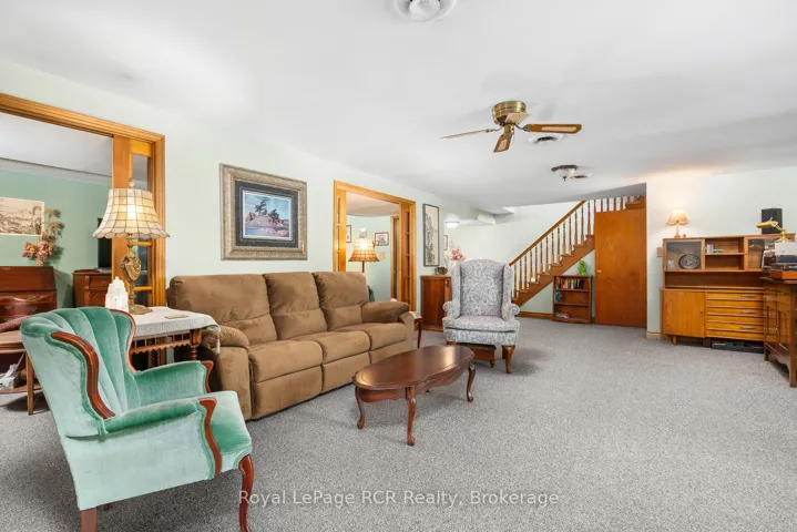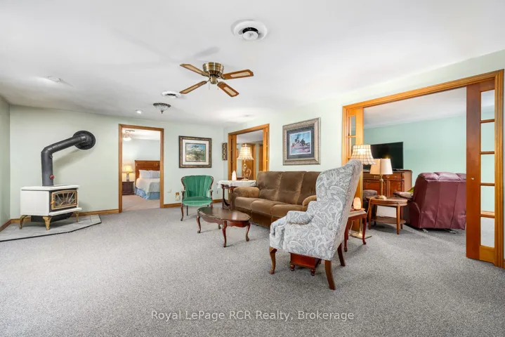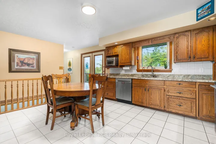 +"PublicRemarks": "Rare opportunity to own a waterfront acreage just minutes from Hanover, offering a gorgeous natural setting with a lovely bungalow, 2 storage sheds and only moments to the convenience of town amenities. Located on a paved road with Wightman fibre optic internet, this property combines rural living with modern connectivity. The fully bricked 3+1 bedroom, 3 bathroom bungalow features a practical layout. The main floor offers an eat-in kitchen with solid wood Hanover Cabinetry, quartz countertops, and French doors leading to a large deck overlooking the forest and Beatty Saugeen River. The living room includes a picture window with views of the front covered porch, trees and gardens. There are three bedrooms, including a spacious L-shaped primary with large closet and direct access to the four-piece bathroom. A two-piece bathroom, laundry room, and attached double car garage complete the main level.The fully finished lower level includes a walk-out, living room with an airtight wood stove, family room with pocket French doors, a spacious bedroom, kitchenette, three-piece bathroom, 3 storage rooms--ideal for guests or multigenerational living. Other features include two automatic garage door openers, updated windows (2016), high-efficiency furnace, central air (2010), water system (with RO water treatment, iron filter, water softener), recycled asphalt driveway, generator, full appliance package and two storage sheds.This acreage is a private playground--whether you are fishing or tubing in the summer, snowshoeing in the winter, relaxing at the river or at the campfire, watching wildlife or gardening, every season offers a new way to enjoy outdoor life. Conveniently located just minutes from Hanover's schools, hospital, and shopping, this waterfront property combines a peaceful rural setting with easy access to everyday amenities. Spacious with main floor just over 1600sq ft, lower level 1343, above grade finished approx 2400 sq ft with walkout."
