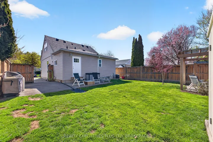 +"PublicRemarks": "Cute as a Button starter home in a convenient location! This home requires no work, just move in and live! Unique 4 bedroom home features 2 large bedrooms on the main floor (one even has a walk in closet!!) with a 4pc bath and 2 more large bedrooms upstairs with a 3pc bath. When you walk in you will love the open concept living room, dining room and kitchen design with the 2 main floors bedrooms nestled off to the opposite side. All appliances included (Hot Water Tank is owned). Driveway can easily fit up to 3 cars and in your fully fenced yard you can spend your days watching the flowers grow under your pergola and flag stone sitting area. Updated furnace (2021), AC (2022), Roof (2025), Hot water tank owned (2023), Pergola (2022) and fully fenced yard (2018). Located close to transportation, schools and only 1.27km to the QEW!"