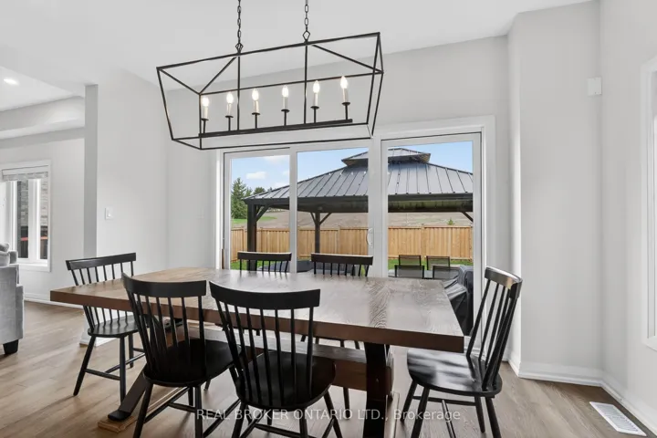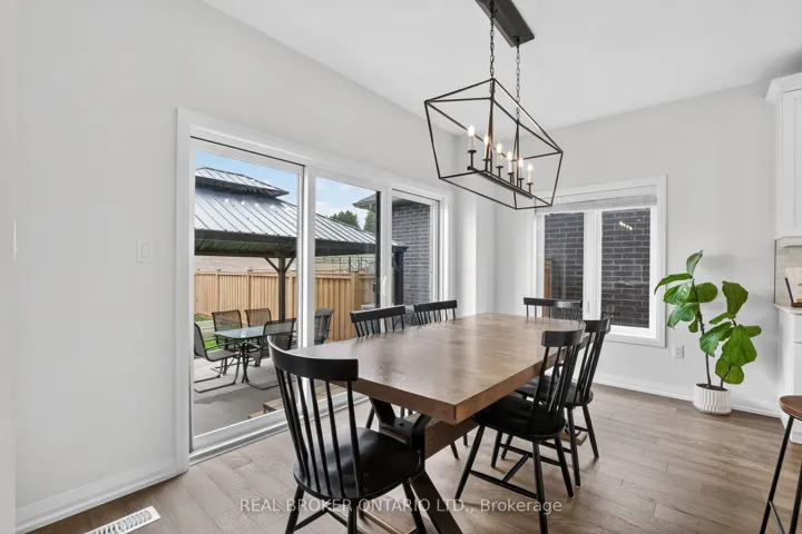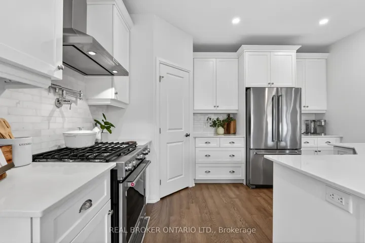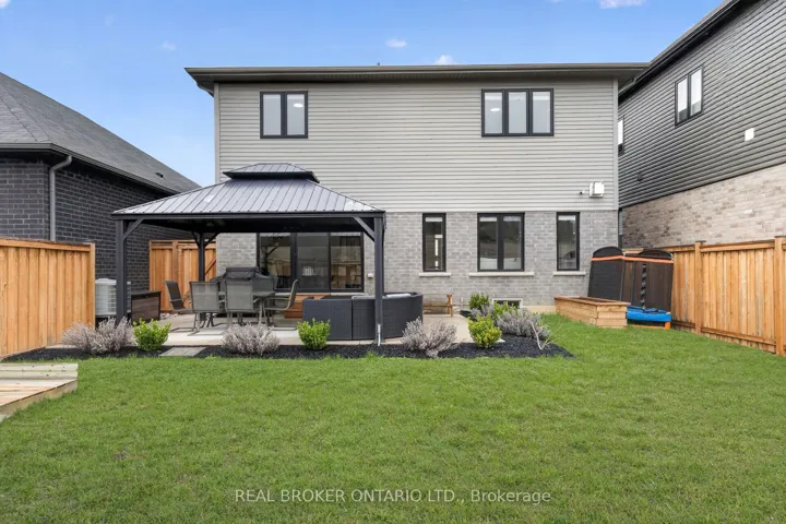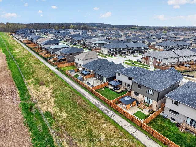 +"PublicRemarks": "Serene Views. Timeless Finishes. Wine Country Living. This exceptional residence blends timeless modern finishes with thoughtful design, offering 4 bedrooms, 3+1 bathrooms, and a spacious layout tailored for both everyday living and elevated entertaining. The main floor features 9-ft ceilings, enhancing the bright, open-concept layout where built-in cabinetry frames a sleek gas fireplace in the stunning living room. Triple-panel sliding glass doors extend the space to a private patio, creating a seamless indoor-outdoor experience backing on to complete privacy. The kitchen is equally impressive, featuring quartz countertops, an eye-catching backsplash, a gas range with pot filler, and a convenient corner pantry. A large island overlooks the living and dining areas, all illuminated by a wall of windows that fills the home with natural light and makes for a fantastic space to entertain friends and family. Up stairs, the expansive primary suite is perfectly positioned to take in tranquil farmland views, complete with a walk-in closet and an ensuite featuring a glass walk-in shower. All bedrooms are generously sized and include their own walk-in closets. A secondary bedroom with a walkout balcony shares a Jack-and-Jill bathroom with the adjoining bedroom, while upper-level laundry adds everyday convenience. Outdoors, the backyard offers a perfect balance of structure and open space, featuring a 23' x 16' concrete patio ideal for entertaining, surrounded by green space and complete privacy with no rear neighbours-just uninterrupted farmland views. Set just minutes from Niagara's renowned wineries, scenic trails, and charming parks, this home offers a lifestyle defined by privacy and beauty."