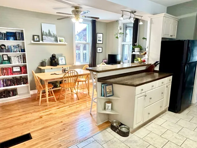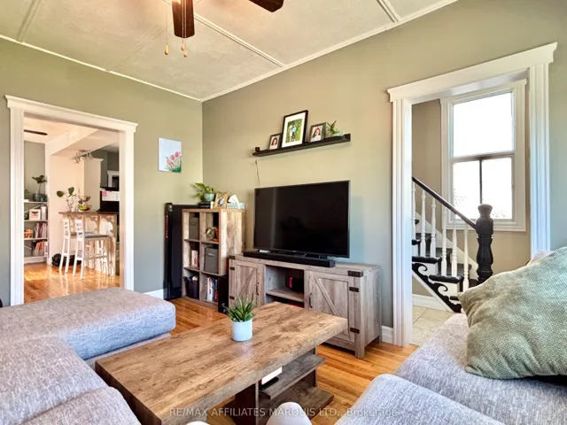 +"PublicRemarks": "Clean, bright, and well maintained inside and out, this charming 2 bedroom, 2 bathroom century home offers character and comfort in a quiet & convenient location that is situated across from Lamoureux Park, the St. Lawrence River/Waterfront Trail, and just a few blocks from downtown. The main floor living space features 9' ceilings, spacious living and dining rooms with hardwood floors, and an updated rustic kitchen with oak butcher block counters, breakfast bar, and included appliances. A side entrance leads to a convenient mudroom, and the updated 3-piece bath/laundry room includes a jacuzzi tub. Upstairs offers two good-sized bedrooms, including a very spacious primary with walk-in closet, along with a nicely updated 3-piece bathroom. Outside, enjoy the covered and screened-in side porch, fenced-in backyard with patio, utility shed, and carport/lounging area. Some key recent updates include a new gas furnace (2022), new shingles (2023), and new central air unit (2024). This is a great opportunity to own an affordable and well-cared-for home in a great location that is close to shopping, parks, the waterfront and downtown amenities. Book your viewing today!"