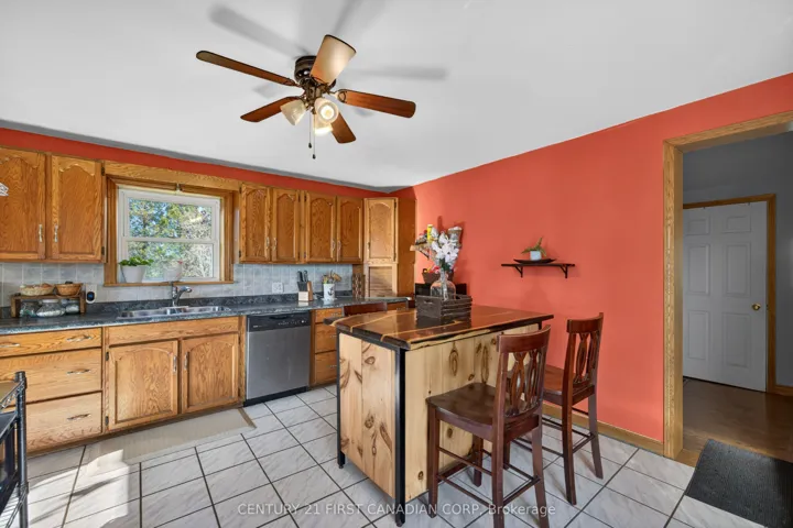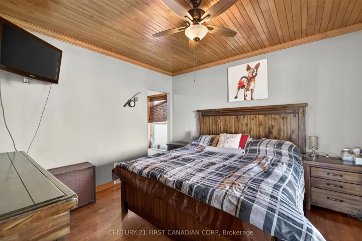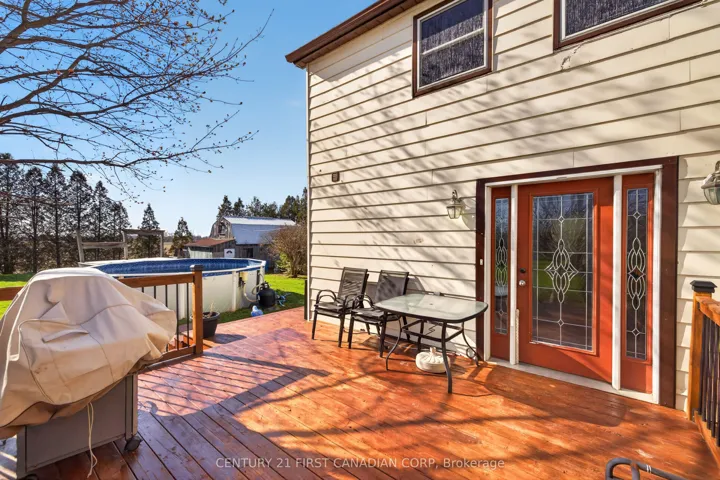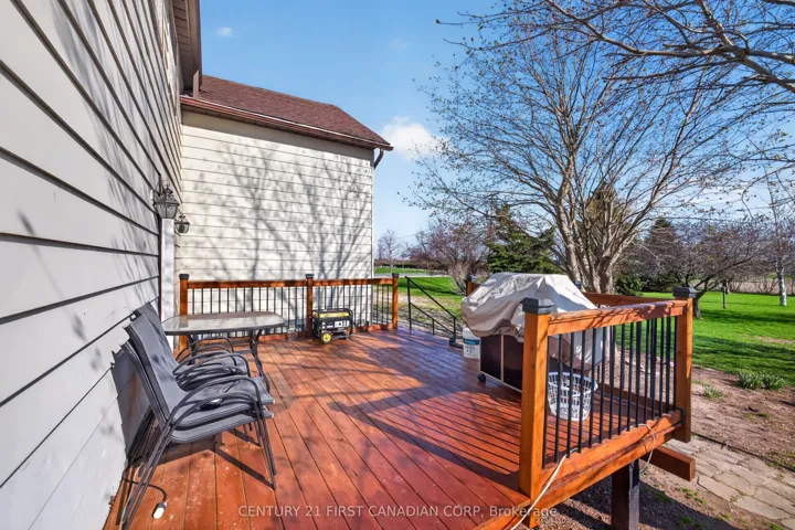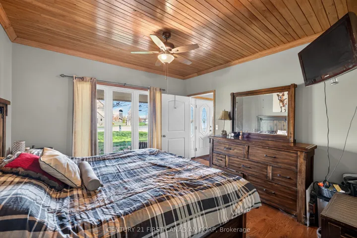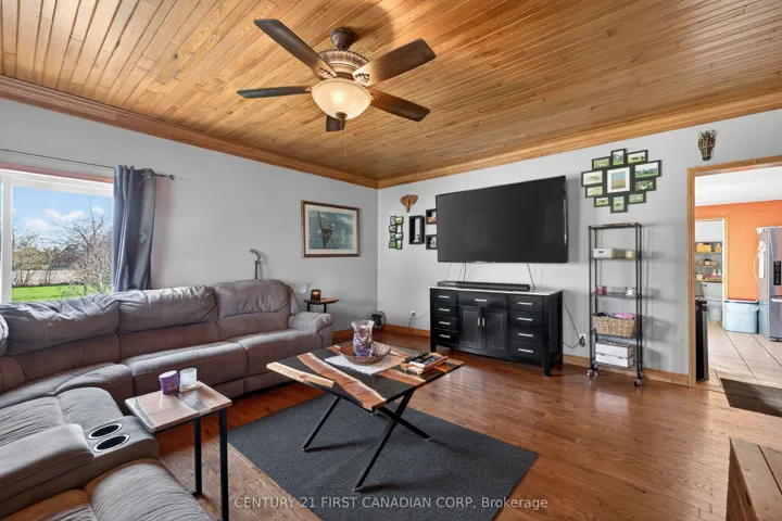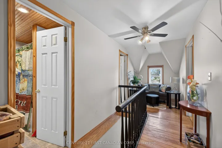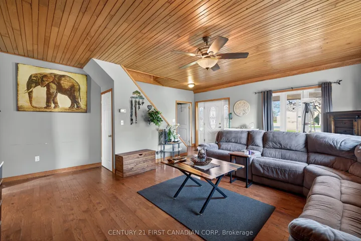 +"PublicRemarks": "Over 2,100 sq ft of character-filled country living on nearly an acre of mature, landscaped grounds - just minutes from Bayfield and Grand Bend. This 4-bedroom, 2.5-bath home features oak hardwood flooring and interlocking oak ceilings, a custom ensuite, two hydro-serviced outbuildings plus a shed, and productive grounds complete with apple and cherry trees, rhubarb, and room for multiple vegetable gardens. Step off the back deck at dusk and catch some of Canada's best sunsets over Huron County. Tranquility, space, and amenities within reach - this one checks every box."