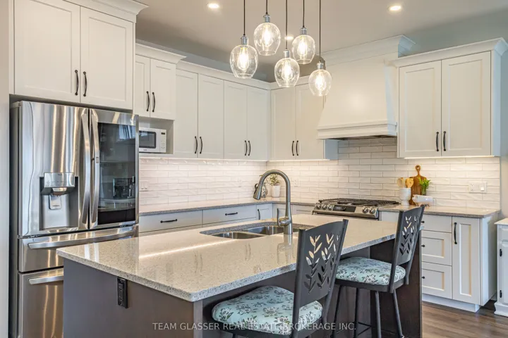 +"PublicRemarks": "Lucchetta bungalow offering 2,850 sq. ft. of beautifully finished living space in the sought-after 55+ lifestyle community of Hunters Pointe. Designed for comfort, easy living & entertaining, this meticulously maintained home showcases extensive, thoughtfully selected builder upgrades throughout, along with 1,680 sq. ft. on the main floor plus a fully finished basement-providing ample space for family & guests.The newly painted main level features porcelain tile & luxury vinyl flooring throughout, with 9-foot ceilings that create a bright, open feel. The spacious kitchen is thoughtfully designed with stainless steel appliances, a pull-out pantry & a newly installed (Feb 2026) 36" induction cooktop & speed microwave convection oven, flowing seamlessly into the living & dining areas. Built-in surround sound enhances the experience on both levels.The primary suite offers a custom walk-in closet & private ensuite with walk-in shower. Step outside to a large extended composite deck with a covered section-perfect for relaxing or hosting.Extra-wide stairs lead to the finished basement with 8-foot ceilings, featuring a large recreation & entertainment area, two additional bedrooms, a full bathroom, wet bar & ample storage.The double-car garage is equally well-equipped with side-yard access, upper shelving, bicycle pulley storage & a coated concrete floor.Exterior highlights include a brick & stone façade, asphalt driveway, irrigation system & low-maintenance landscaping.Residents enjoy exceptional amenities with $300/month community fees including a heated saltwater indoor pool, fitness centre, pickleball courts, tennis courts, lawn care, driveway snow removal, monitored community security, and more.Ideally located just off Highway 406 in the heart of Niagara Region, minutes to shopping, restaurants, wineries, golf courses & nearby cities.As an added bonus, the home was built to Net Zero Ready standards, offering enhanced efficiency and lower operating costs."