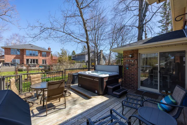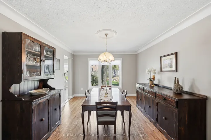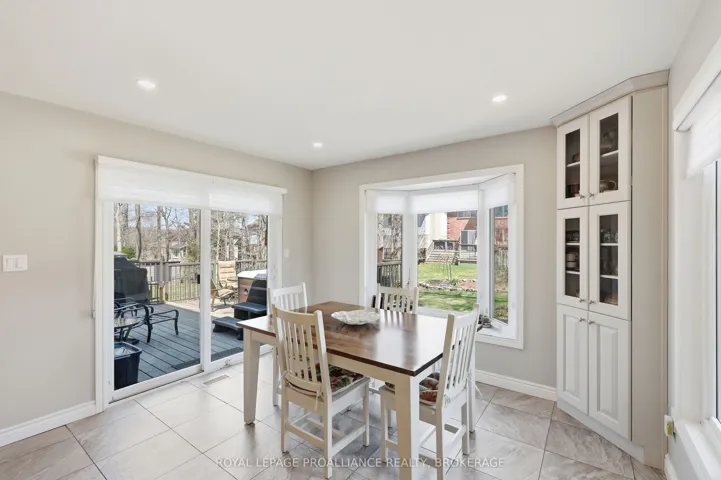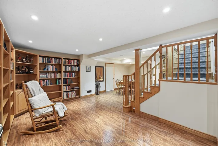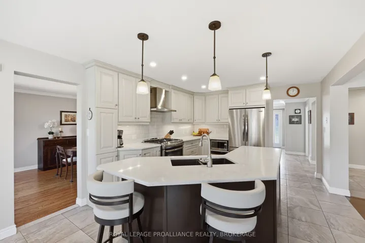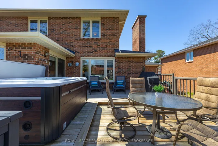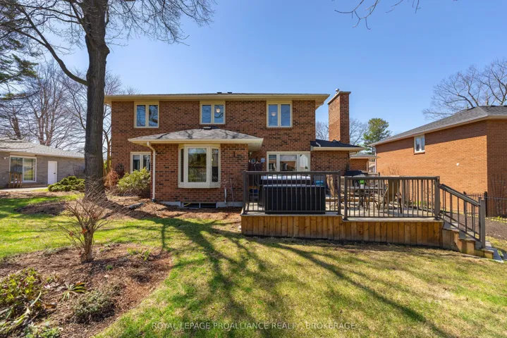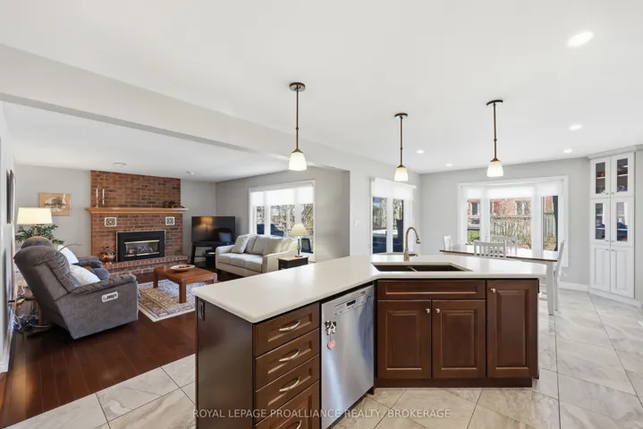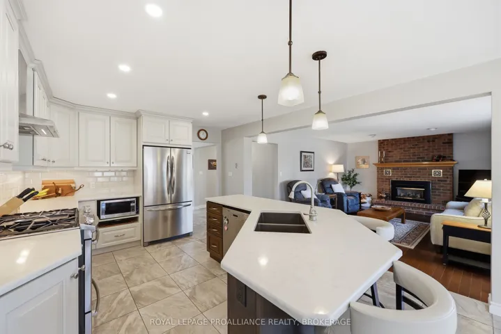+"PublicRemarks": "Meticulously maintained executive residence in highly sought-after Bayshore Estates. Showcasing quality craftmanship and timeless upgrades throughout, this all-brick, two-storey home offers both elegance and comfort in equal measure. Sunlight pours into the airy living spaces, creating a warm and inviting atmosphere from the moment you arrive. The spacious foyer features a home office, convenient two-piece bathroom, large closet, laundry area and direct access to the double-car garage. At the heart of the home, the open-concept gourmet kitchen is perfectly suited for both everyday living and entertaining. It boasts custom cabinetry, quartz countertops, an extended island with breakfast bar, updated appliances and a comfortable eating area with bay window. Seamlessly connected to the family room, this space anchored by rich hardwood flooring and a cozy gas fireplace - ideal for gathering or unwinding at day's end. A bright breakfast area, along with separate living and dining rooms with hardwood flooring complete the main level. Four generously sized bedrooms grace the second level and provide exceptional space for the whole family. The primary suite serves as a private retreat, featuring a beautifully renovated four-piece ensuite. The finished lower level offers incredible versatility, with a spacious recreation room, hobby area, three-piece bathroom, indoor workshop, cold room and ample storage. Step outside to your private backyard oasis, complete with a large deck, relaxing hot tub and a lush perennial gardens - perfect for enjoying peaceful outdoor moments. Ideally located close to everyday amenities, Collins Bay Marina, Lemoine Point Conservation Area and just a 15-minute drive to Queen's University, KHSC and downtown. Experience the charm of true community living - this exceptional home is ready to welcome you into your next chapter. Don't miss the opportunity to create a sanctuary you'll be proud to call your own."
