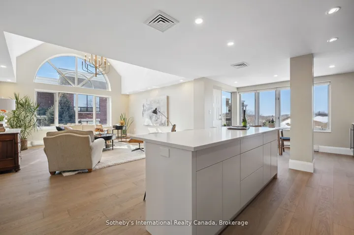 +"PublicRemarks": "Perched above the picturesque Avon River, this spectacular penthouse at 30 Front Street isn't just a residence, it's a statement. A rare fusion of luxury, design, and location, this is where elevated living meets the cultural soul of Stratford. This one-of-a-kind suite redefines sophistication. Whether you're hosting champagne evenings on your private terrace or enjoying a quiet morning with theatre-district views, this penthouse is where your story unfolds and it's nothing short of extraordinary. Perfectly situated between the Festival and Tom Patterson theatres, this stunning top-corner unit offers an unbeatable location with southwest exposure, just steps from parks, restaurants, and all that downtown Stratford offers. This professionally redesigned residence at The Huntingdon boasts just over 1,500 sq. ft. of elegant living space with a smart, thoughtful layout. Featuring two spacious bedrooms with built-in closet systems, two full bathrooms with porcelain floors, and an inviting living room with vaulted ceilings, oversized windows, and a generous dining area, this suite is designed for comfort and style. A full wall of windows provides beautiful year-round views, while the large private corner terrace is perfect for morning coffee or evening cocktails. This floor plan includes added soundproofing, engineered European white oak flooring, and pot lights throughout. Custom walnut veneer cabinetry by Homestead Woodworking complements quartz countertops, a large island with extra storage, and top-tier integrated appliances: Fisher & Paykel wall oven, microwave, induction cooktop, and Bosch dishwasher. Includes deeded underground parking near the door and elevator, assigned locker, outdoor guest parking, controlled entry, visitor parking, and plans for EV charging. This pet-friendly, quiet building is home to professionals and theatre artists. Fully rebuilt with permits, this home offers a refined, maintenance-free lifestyle in Stratford's most desirable condo."