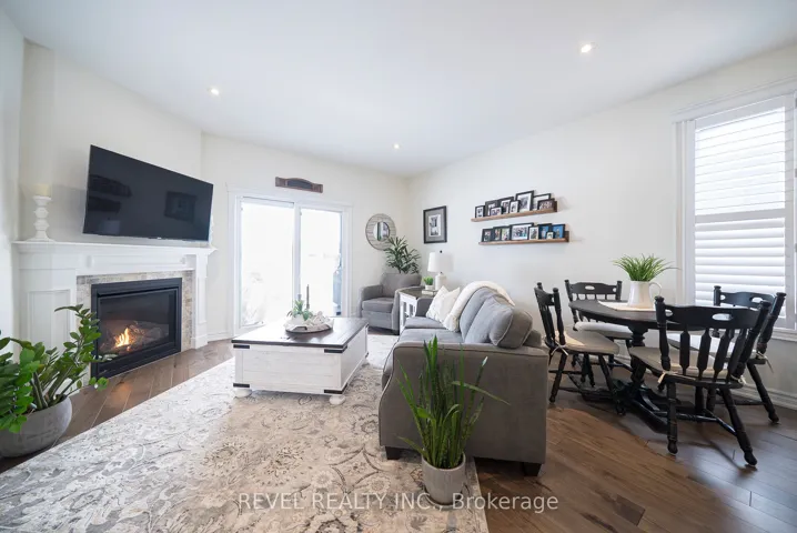 +"PublicRemarks": "Welcome to this beautifully maintained 2+1 bedroom, 3 bathroom bungalow in the charming small town of Jarvis - voted as "Canada's Kindest Community" and just a short drive to the beaches and amenities of Port Dover. Nestled within a quiet, welcoming neighbourhood that still fosters a strong sense of community, this common elements condominium offers a thoughtful layout, modern finishes, and comfortable one-floor living with a fully finished basement-ideal for downsizers, professionals, or those seeking low-maintenance living. The main floor boasts engineered oak hardwood in the principal rooms, a versatile front bedroom/den with double doors, and a 4-piece guest bathroom with tiled floors and tub/shower combo. The bright kitchen offers white shaker cabinetry, quartz countertops, subway tile backsplash, peninsula, and stainless steel Frigidaire appliances. The open living/dining area includes a natural gas fireplace and patio doors that lead out to the backyard.The primary suite features a walk-in closet and a 3-piece glass shower ensuite, plus convenient main-floor laundry with garage access. The fully renovated (2022) basement provides a spacious recreation room with shiplap accent walls, sconce lighting, and an electric fireplace-ideal for relaxing or entertaining-along with a large bedroom featuring a proper egress window and generous closet, plus ensuite privilege to a stylish 3-piece bathroom with glass shower. Step outside to the covered backyard patio, a perfect space to enjoy your morning coffee, host summer dinners, or unwind in any season. Thoughtfully designed, move-in ready, and located in a welcoming community that offers small-town charm with nearby lakeside access, this home delivers comfort, style, and easy living-an excellent opportunity in Jarvis."