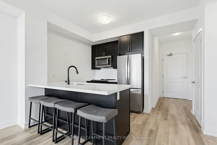 +"PublicRemarks": "Welcome to the exclusive Boutique Collection at Trend Living in beautiful Waterdown. This spacious 628 sq ft unit offers 602 sq ft of thoughtfully designed interior living space, plus a 26 sq ft private balcony showcasing stunning, unobstructed southeast views. Inside, you'll find upgraded vinyl flooring and sleek stainless-steel appliances. The bright bedroom features a large bay window, filling the space with natural light. The modern kitchen is designed for both style and function, complete with quartz countertops, a generous peninsula, and breakfast bar seating-perfect for entertaining or everyday living. The versatile family room offers a unique layout with enough space to comfortably incorporate a work-from-home setup. Additional conveniences include in-suite laundry, storage locker on same floor & private underground parking .This Six-Floor Boutique Building offers a private entrance, elevator access, bike storage, and a premium party room & visitor parking. Residents also enjoy access to a rooftop patio and fitness area conveniently located in the adjacent Trend 3 building. Ideally situated on a public transit route, this location provides easy access to the QEW, Highway 403, Highway 6, and the GO Station-just minutes from downtown Burlington and Hamilton."