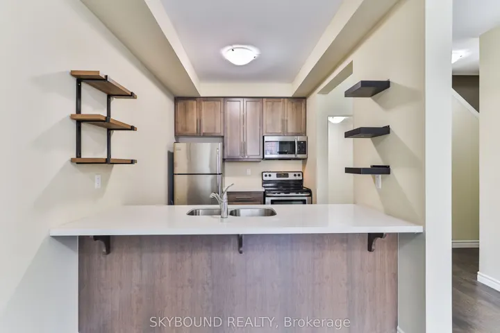 +"PublicRemarks": "Welcome to this exquisite two bedroom Ancaster townhouse by Losani Homes (2017). The "Tartan" model boasts 9ft ceilings, hardwood flooring and open concept floor plan on the main level of the home. The dining room leads to a glass enclosed balcony. A modern kitchen features quartz counters, pot and pan drawers and extended height upper cabinets. The primary bedroom is a private sanctuary with an ensuite bath. There is bedroom level laundry and two full bathrooms with half bath for convenience. The first floor features a versatile media room/flex space, perfect for a home office or gym. The layout ensures optimal comfort and functionality. In an excellent location, close to public transit, shopping, highway 403 and amenities."