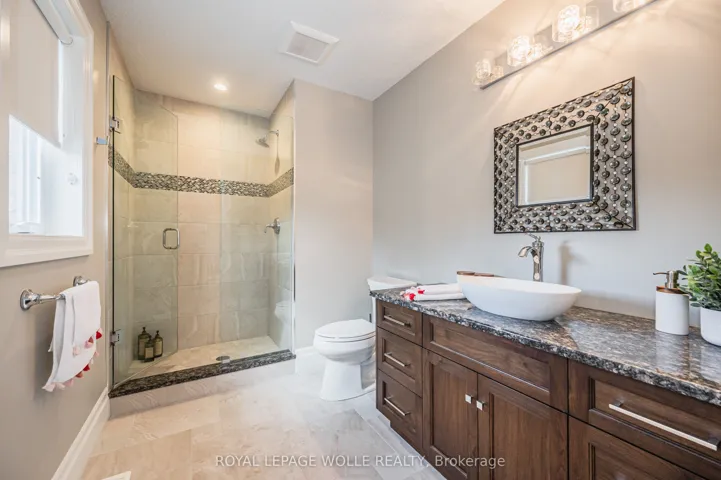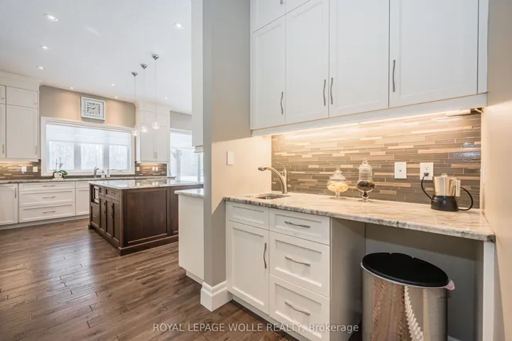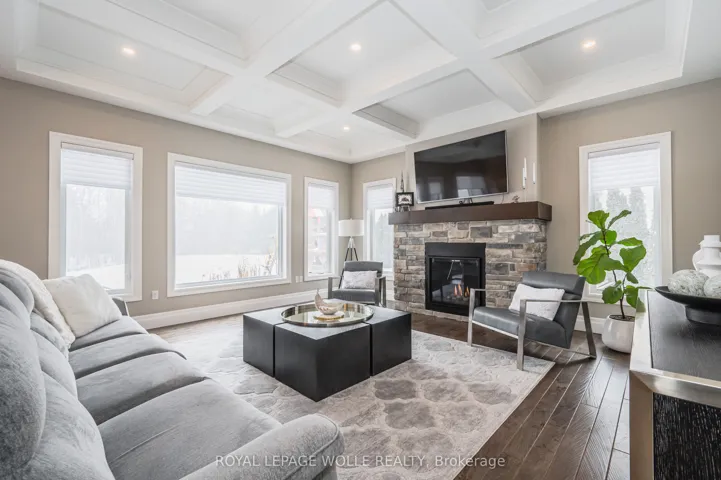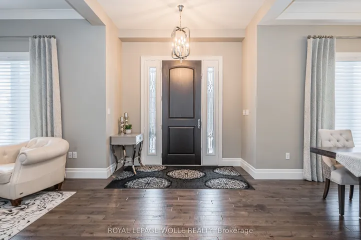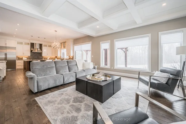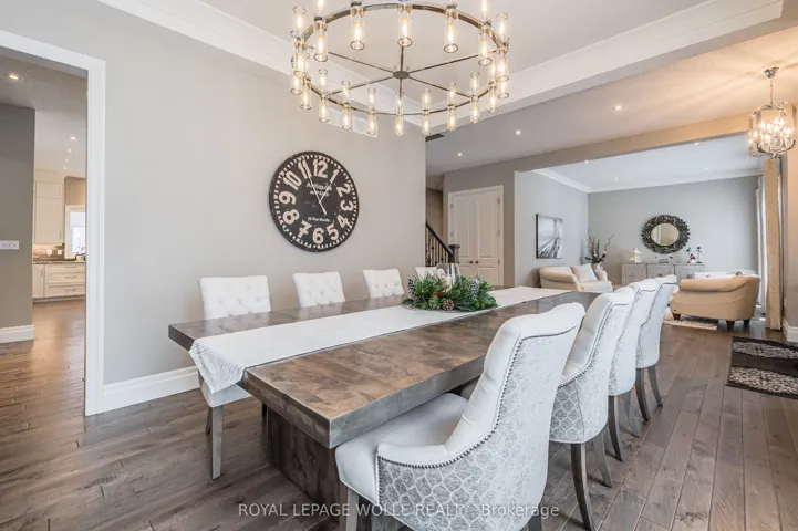+"PublicRemarks": "This 4+1 bed/4.5 bath home is set upon a SPRAWLING 0.88-acre RAVINE TREED LOT. This CUSTOM-BUILT home boasts 5851.91 fully finished square feet. Enjoy the grandeur of the front stone/brick exterior w/TRIPLE CAR GARAGE. A front foyer is flanked by a formal living room & distinguished dining room. The main floor unfolds with PREMIUM HAND-SCRAPED HARDWOOD FLOORS, leading to the family room adorned with a COZY GAS FIREPLACE, complete with a STONE SURROUND MANTLE & COFFERED WAFFLE CEILING. Towering 10-FOOT CEILINGS accentuated by 9-foot 4 hinged doors, windows w/ENCHANTING VIEWS of the expansive backyard retreat. The CUSTOM CHERVIN KITCHEN exudes a two tone theme, featuring a custom WALNUT WOOD CENTER ISLAND and CEILING-HEIGHT TALL CABINETRY. High-end THERMADOR STAINLESS APPLIANCES, incl. a 6-burner gas stove, elevate the culinary experience, while a MOSAIC TILE backsplash adds a touch of sophistication. The kitchen seamlessly flows into a Butler's Servery & WALK-IN PANTRY. A main floor den/office w/custom built-ins is complemented by a convenient 2-piece powder room, main floor laundry, & mudroom w/garage access. Ascend the IRON-RAILED HARDWOOD stairs where the opulent primary bedroom awaits. Hand Scraped Hardwood flows through the 2nd floor. A custom double tray ceiling & walk-in closet w/organizing systems & the luxuriously appointed ensuite beckons with a FLOATING TUB, oversized glass-enclosed walk-in shower, & double vanity. A second bedroom w/ensuite bath & two other bedrooms sharing a JACK'N'JILL BATHROOM. The recently finished lower level offers a large additional living area w/5th bedroom & 3pc bath & games/media area with space for a home gym or hobby room; a convenient sep. walk-up access for ideal multigenerational living with a rough-in for a full kitchenette & 2nd washer/dryer rough-in. A rare opportunity to own a home that epitomizes the pinnacle of modern living. Situated close to 401 ACCESS and mere minutes from an array of shopping amenities."