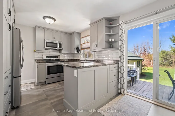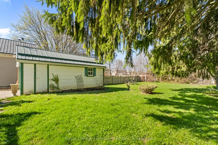 +"PublicRemarks": "Whether you are starting out or downsizing, this beautifully kept home will take good care of you. The location is ideal, located extremely close to Exeter's beautiful Mac Naughton park and trails, steps to schools, playgrounds, shops and restaurants. Inside, the kitchen has been beautifully updated, with newer appliances, cabinetry, countertops and flooring. The front sunny living room features a cozy gas fireplace, and hardwood flooring. The updates continue into the bathroom, with a newer vanity, cabinetry, and tub/shower. The main floor also features two bedrooms with hardwood flooring, and the primary bedroom offers two closets for ample storage. With a full basement, there is an opportunity to add more living space if desired, or to utilize as it is for exercise, extra storage, and more. From the dining area, you can walk out to your large, updated deck overlooking the private yard, featuring beautiful mature trees. The maintenance on this home is minimal, with the updated windows, and metal roofing. The property features a detached garage, with matching metal roofing. If you are looking for a solid start to your home owning experience, or you simply have a need for a reliable, comfortable property, this is an optimal home in a fantastic location. Get in touch for more information or a private viewing."