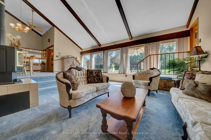 +"PublicRemarks": "Nestled on the tranquil shores of the Scugog River, this stunning waterfront retreat offers a perfect blend of comfort, convenience, and natural beauty. Located just minutes from downtown Lindsay and a short drive to Hwy 407, this 1.18-acre property presents an incredible opportunity to own a piece of paradise while remaining connected to city life. Whether you're a family, retiree, or someone seeking a peaceful retreat, this home has everything you need and more.Property Features Waterfront Access: Convenience of private boat launch, Enjoy direct Riverfront easy access to the Trent Severn Waterway. Perfect for boating, fishing, or simply relaxing by the water.Spacious Interiors: Open-concept design with cathedral ceilings creates a bright and airy atmosphere. The large eat-in kitchen with island is ideal for family meals and entertaining. Private Master Suite with a View: a 3-season Florida room with breathtaking views of the water! Stunning 13 x18 fitness and spa room with California red cedar paneling, & Jacuzzi tub. A large attached two-car garage with direct access into home and added Detached 1.5-car garage provide ample storage space for vehicles, boats, or hobbies. Energy Efficient: With a Natural Custom solar-heated system, this home is energy-efficient, helping to keep utility costs low.Waterfront Living: Easy access to the Scugog River, a short boat ride to Lake Scugog and Lock #33 making this ideal for boating enthusiasts.Family-Friendly: With multiple bedrooms and plenty of space for children to explore outdoors, this home is perfect for families looking for a peaceful retreat with convenient access to Lindsay's amenities.Retire in Comfort: Retirees will appreciate the quiet setting and luxurious master suite, offering a private sanctuary to unwind. The close proximity to Lindsay means access to healthcare, shopping, dining, and cultural activities."
