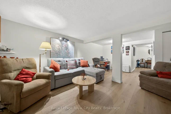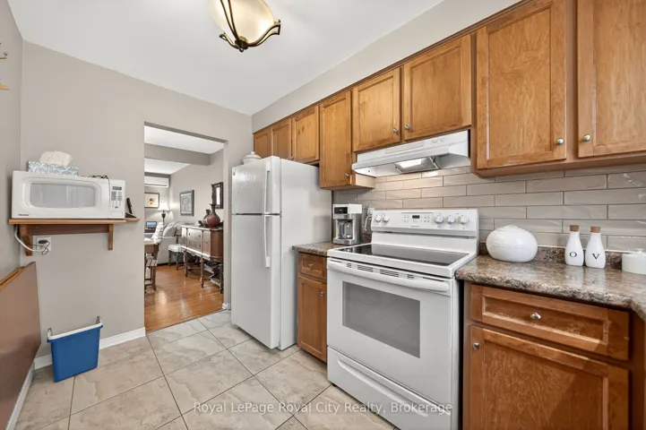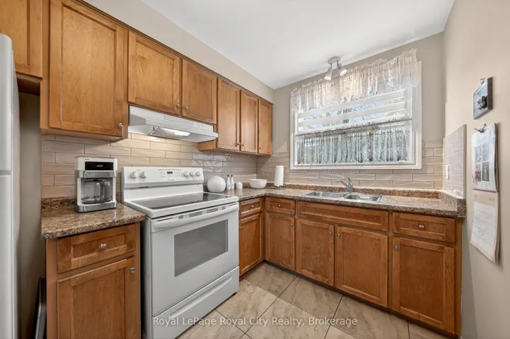 +"PublicRemarks": "It isn't every day you find a home that has been cherished by the same owner for over 20 years, but the moment you pull up to this quiet community, you can feel that history of care. Tucked away in a mature, tree-lined pocket of Guelph's West End, this townhome offers that rare "just right" feeling, spotless, sun-drenched, and completely ready for its next chapter. Stepping inside, the first thing you'll notice is how incredibly bright the main floor feels. This home is completely carpet-free, with the main floor featuring a mix of neutral ceramic tile and quality hardwood flooring that flows through the large living and dining area. This space is designed for real life, with direct access to your private, fully fenced rear yard, a perfect little oasis for a summer BBQ or just enjoying a quiet morning outside. The kitchen is a functional dream, with warm wood cabinetry, ample counter space, and a bright eat-in area perfect for your morning coffee. Upstairs, the sense of space continues with 2 generous bedrooms, each offering plenty of closet storage and big windows that catch the light. Completing the 2nd floor is a bright and spacious 4-piece family bathroom that, like the rest of the home, has been kept in immaculate condition. The lower level is where this home truly surprises you. The massive recreation room features a beautiful corner gas fireplace, creating the ultimate spot to escape the cold for a movie night or a cozy evening with a book. Rounding out this level is a tidy laundry area and impressive storage capacity for all your seasonal gear. Beyond the front door, you're in a location that prioritizes convenience. You are just a short stroll from local parks and schools, with the amenities of the West End and the Hanlon Expressway only minutes away. If you've been searching for a starter home or a place to downsize that doesn't sacrifice quality, this is the one. Don't miss this opportunity to call this house your home!"
