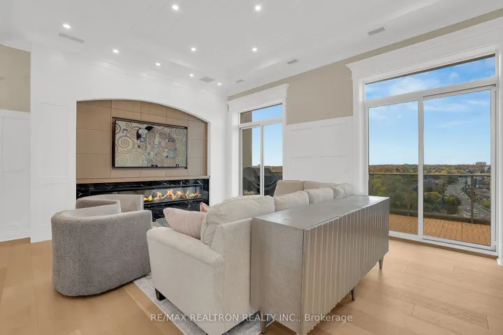 +"PublicRemarks": "Welcome to an exceptional penthouse residence in the prestigious Bellaria Tower Vaughan's only private gated community. This meticulously maintained 2-bedroom, 2-bathroom + den executive corner suite offers a rare blend of space, light, and quiet sophistication.Thoughtfully designed with approximately 1,068 sq. ft. of interior living space plus an expansive 327 sq.ft. private terrace with awning, the suite features 10-foot smooth ceilings and a seamless open-concept layout. Floor-to-ceiling windows invite abundant natural light while framing panoramic views, including distant city skyline and CN Tower vistas.The kitchen is both functional and inviting, complete with granite countertops, stainless steel appliances, and a bright eat-in area overlooking the terrace. The living and dining areas offer generous proportions, ideal for both everyday living and elegant entertaining The primary suite provides a comfortable retreat, complemented by a well-appointed ensuite. A second bedroom and versatile den offer flexibility for guests, a home office.or additional living space.Refined details throughout include upgraded lighting, custom drapery, contemporary finishes, and exceptional storage, including an oversized locker and dedicated parking.Residents enjoy access to beautifully maintained grounds with over 20 acres of landscaped parkland, walking trails, and outdoor amenities, along with indoor facilities including fitness, yoga, and sauna.A rare offering combining privacy, scale, and lifestyle-deal for the discerning tenant or buyer seeking a well-appointed residence in a sought-after community."