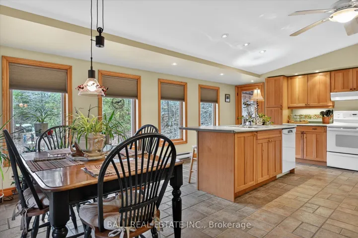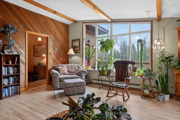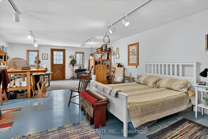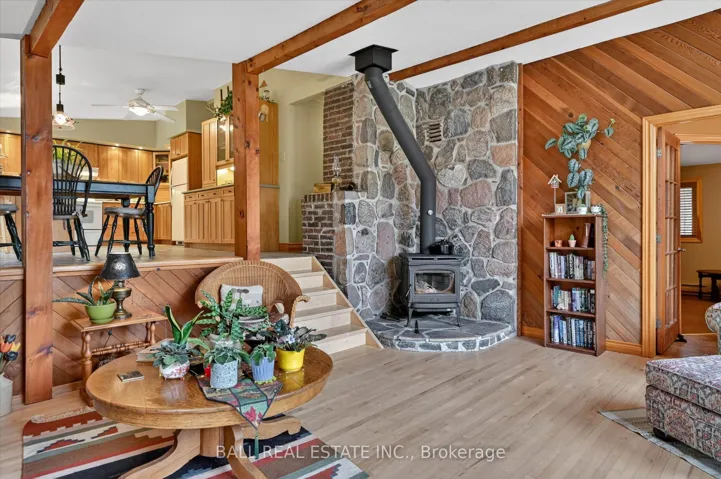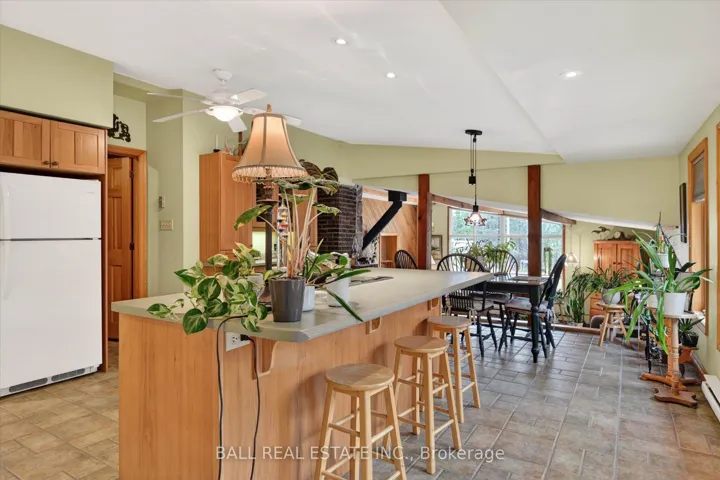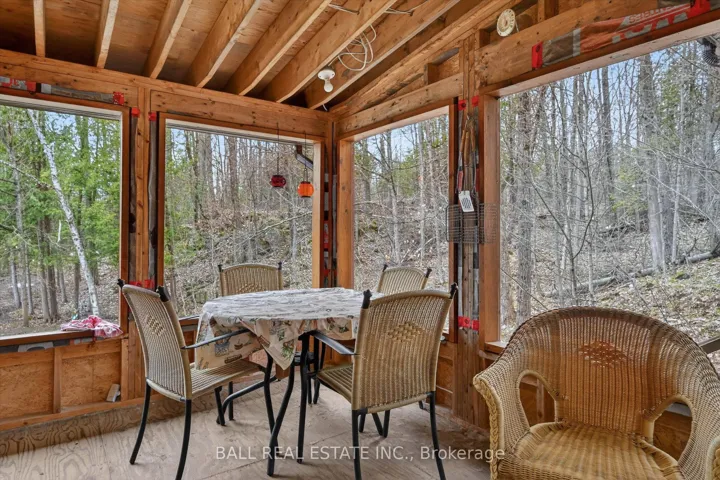 +"PublicRemarks": "65 Acres - Lovely Bright and Open Concept 2 bedroom Raised Bungalow in Woodview. True Canadian Shield topography offering mostly forested acreage off Highway 28. Located 35 minutes North of Peterborough, 22 minutes to Lakefield, and 13 Minutes to Apsley. Main floor offers a spacious living room and an open kitchen/dining area that walks out to a covered/screened porch, and area for BBQ, as well as 2 bedrooms, a bathroom and a walk-in closet at the foyer. Sizeable outbuilding used a studio space, and also offers a large storage area beside. Studio can offer many potential uses (no plumbing currently). There is also a shelter for firewood behind the studio, and the wood is included. Primary heat source is the wood stove, with baseboards as a backup source. Also close by to Stoney Lake, Kawartha Highlands, Kawartha Nordic Ski Trails, High Falls, Petroglyphs and many other great places in the Kawarthas. Roof re-shingled in 2 stages in 2025 and 2026. Septic system was updated 2001."